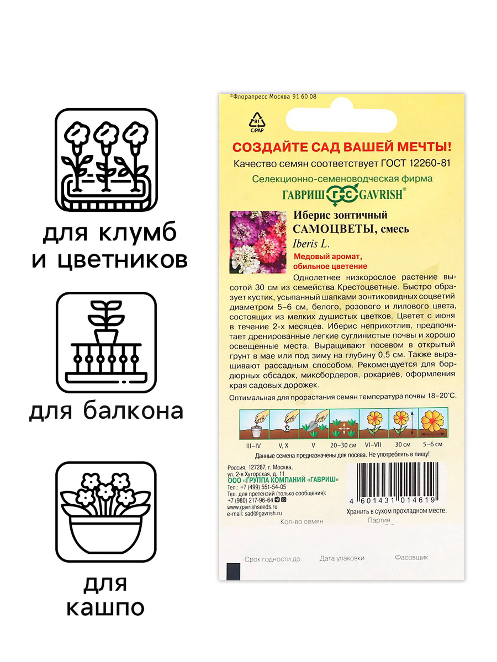 Семена цветов Иберис "СамоСемена цветов ", ц/п, 0.1 г, Гавриш, Россия
