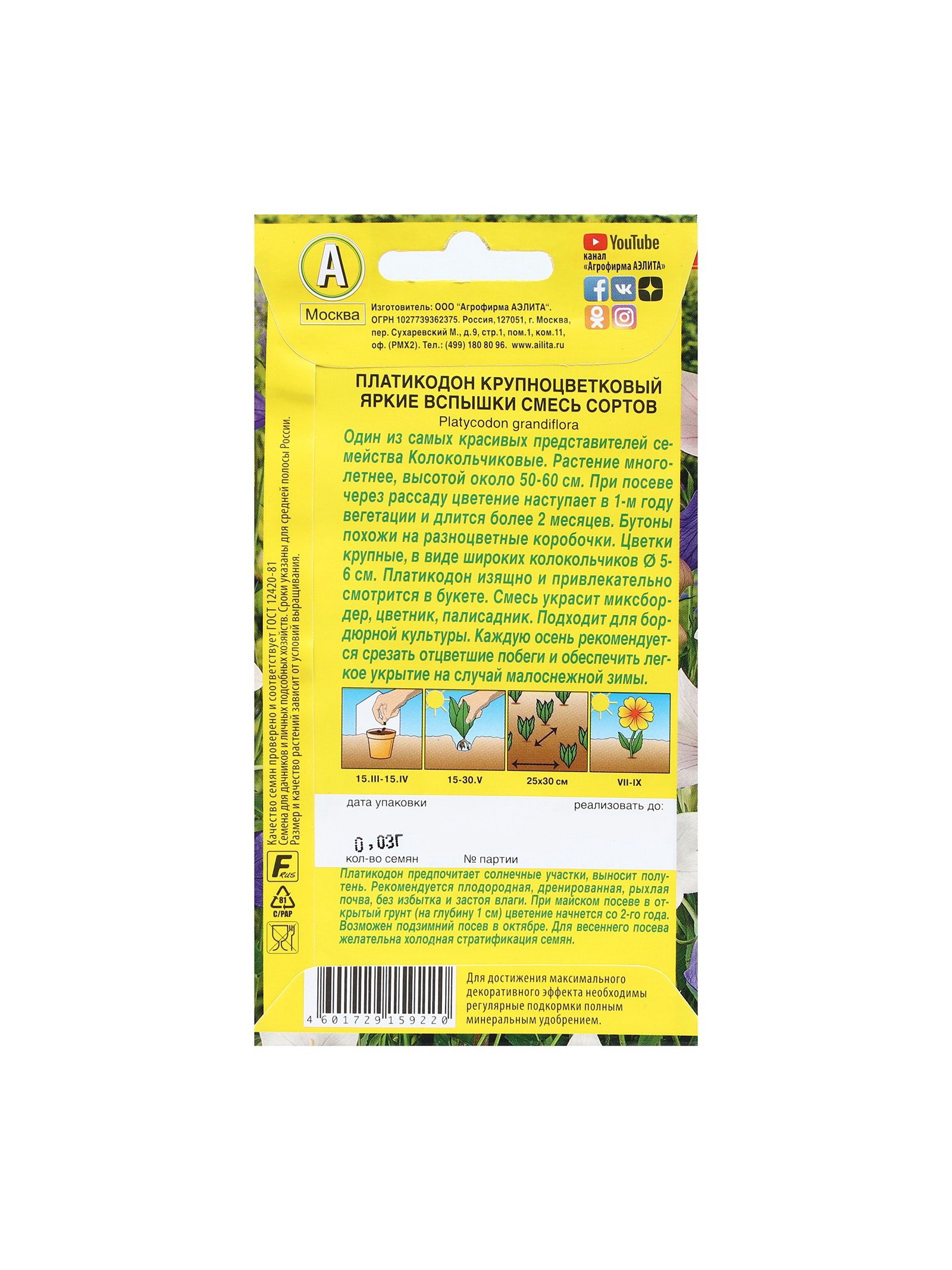 Семена Цветов Платикодон "Яркие вспышки", смесь сортов, 0.03 г, Агрофирма АЭЛИТА, Нидерланды