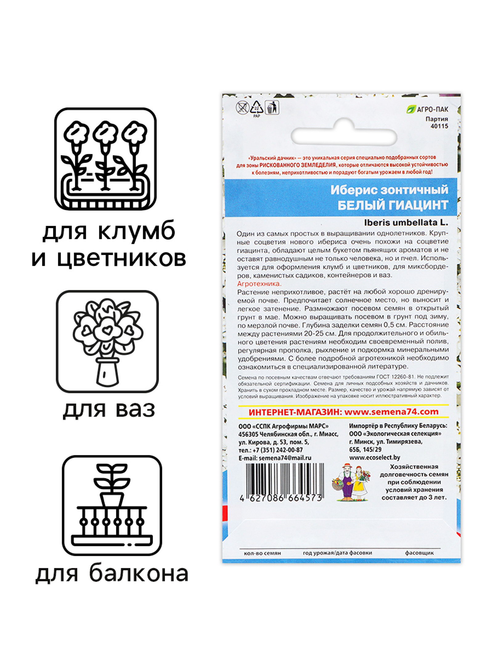 Семена Цветов Иберис зонтичный "Белый Гиацинт", однолетник, 15 г, Уральский Дачник, Россия