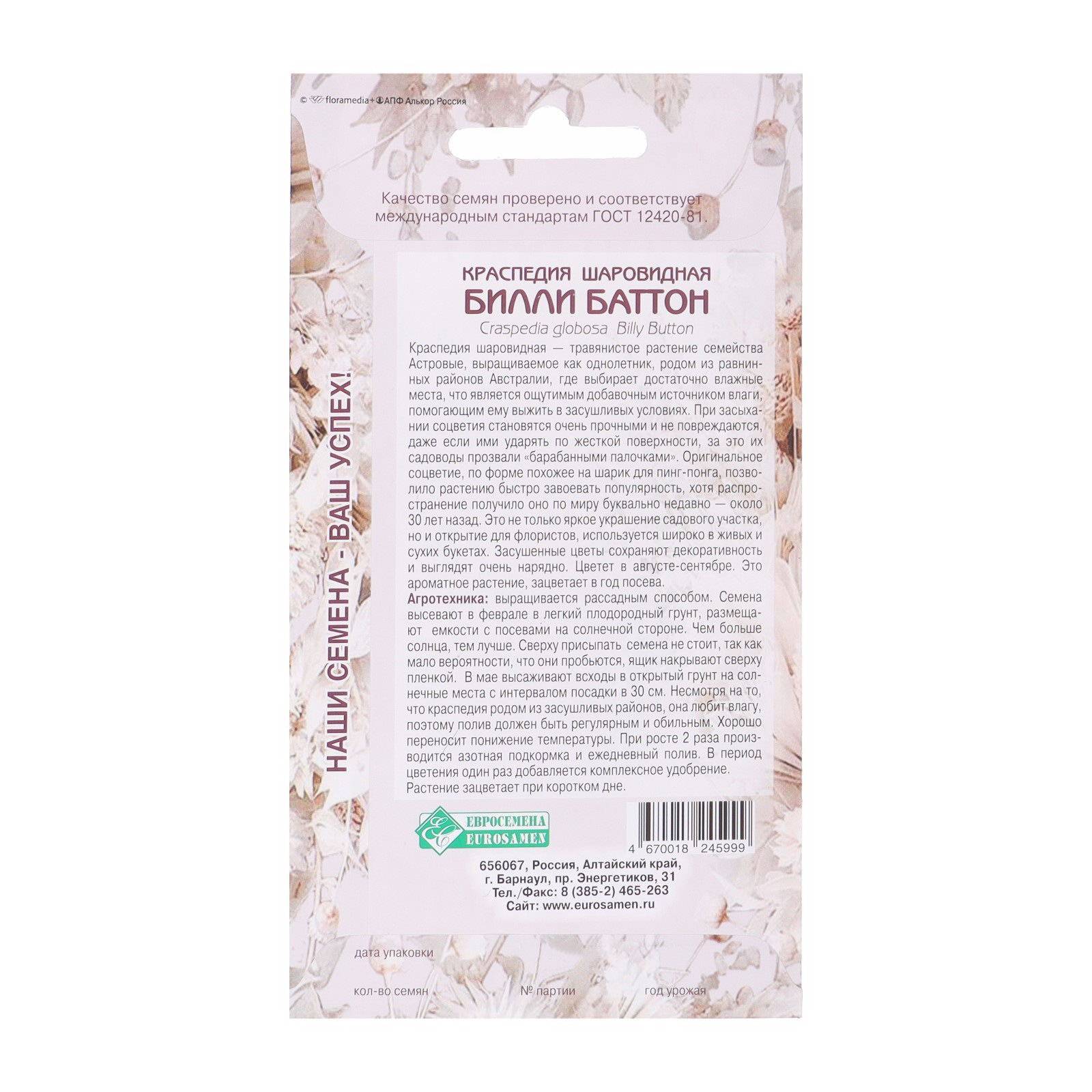 Семена цветов Краспедия шаровидная "Билли Баттон", многолетник, сухоцвет, 0.05 г, Евросемена, Россия