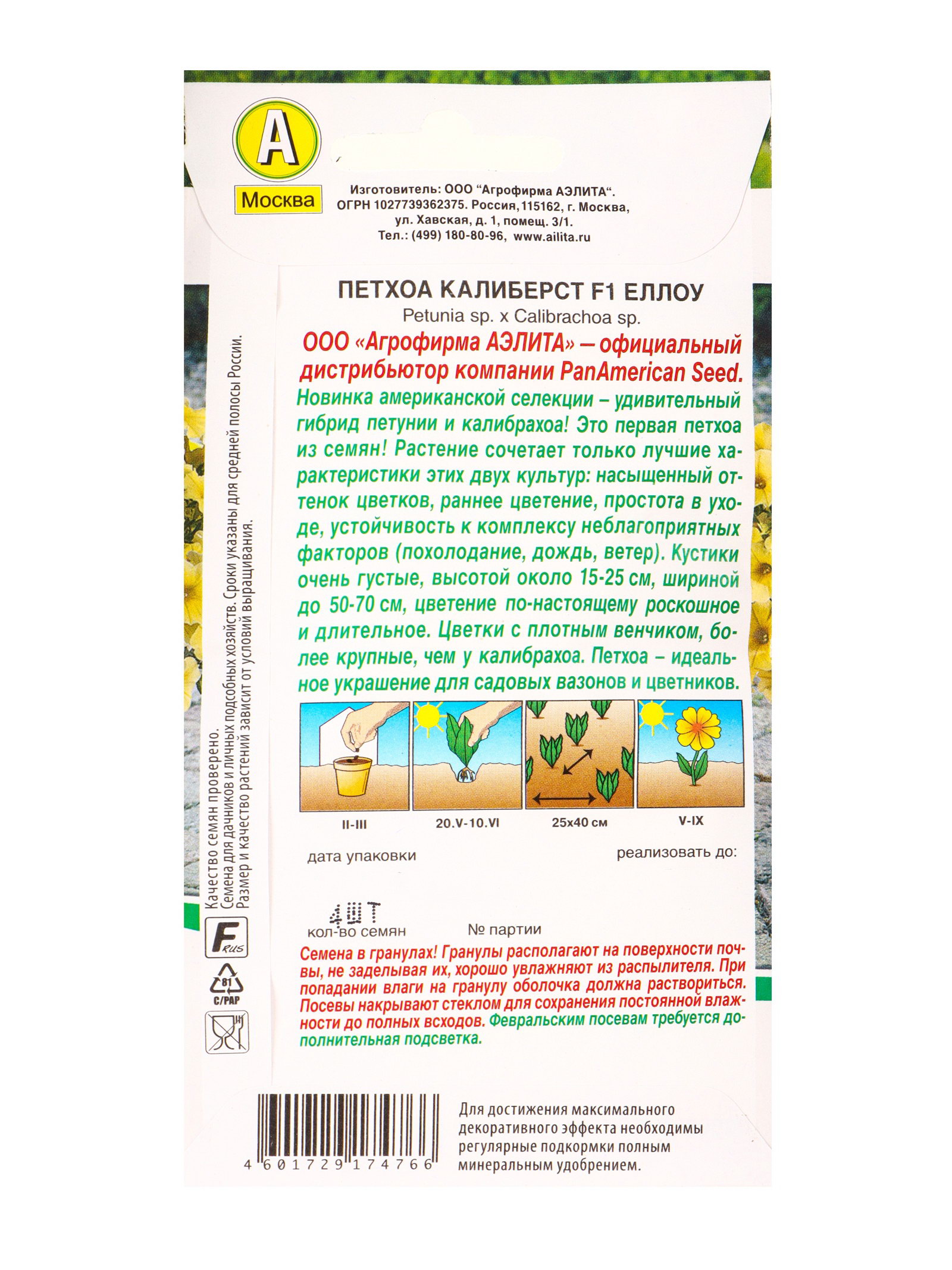 Семена цветов Петхоа Калиберст F1 еллоу, Агрофирма АЭЛИТА, Россия