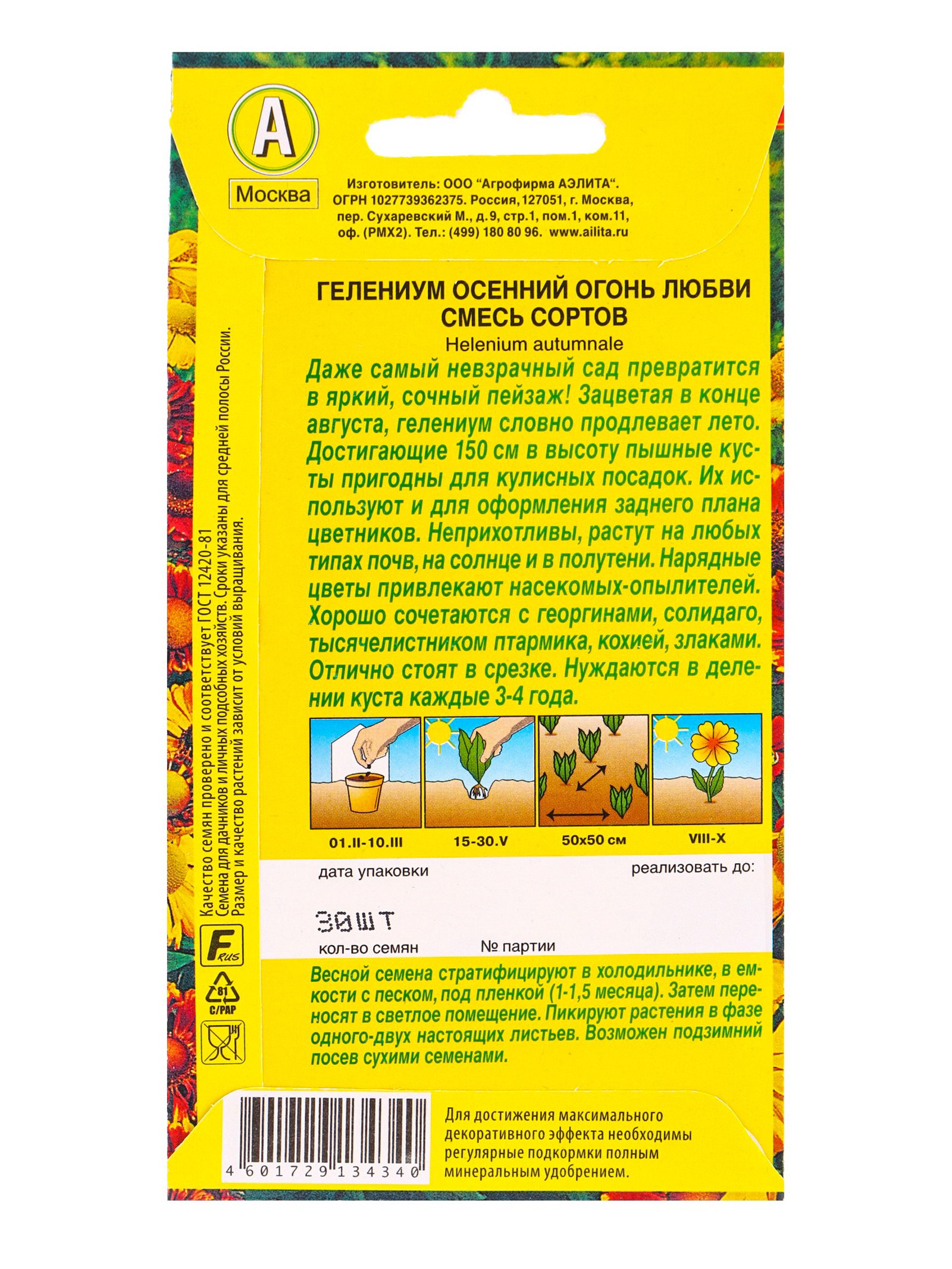 Семена цветов Гелениум Огонь любви, смесь сортов Мн, Ц/П,30 шт., Агрофирма АЭЛИТА, Нидерланды