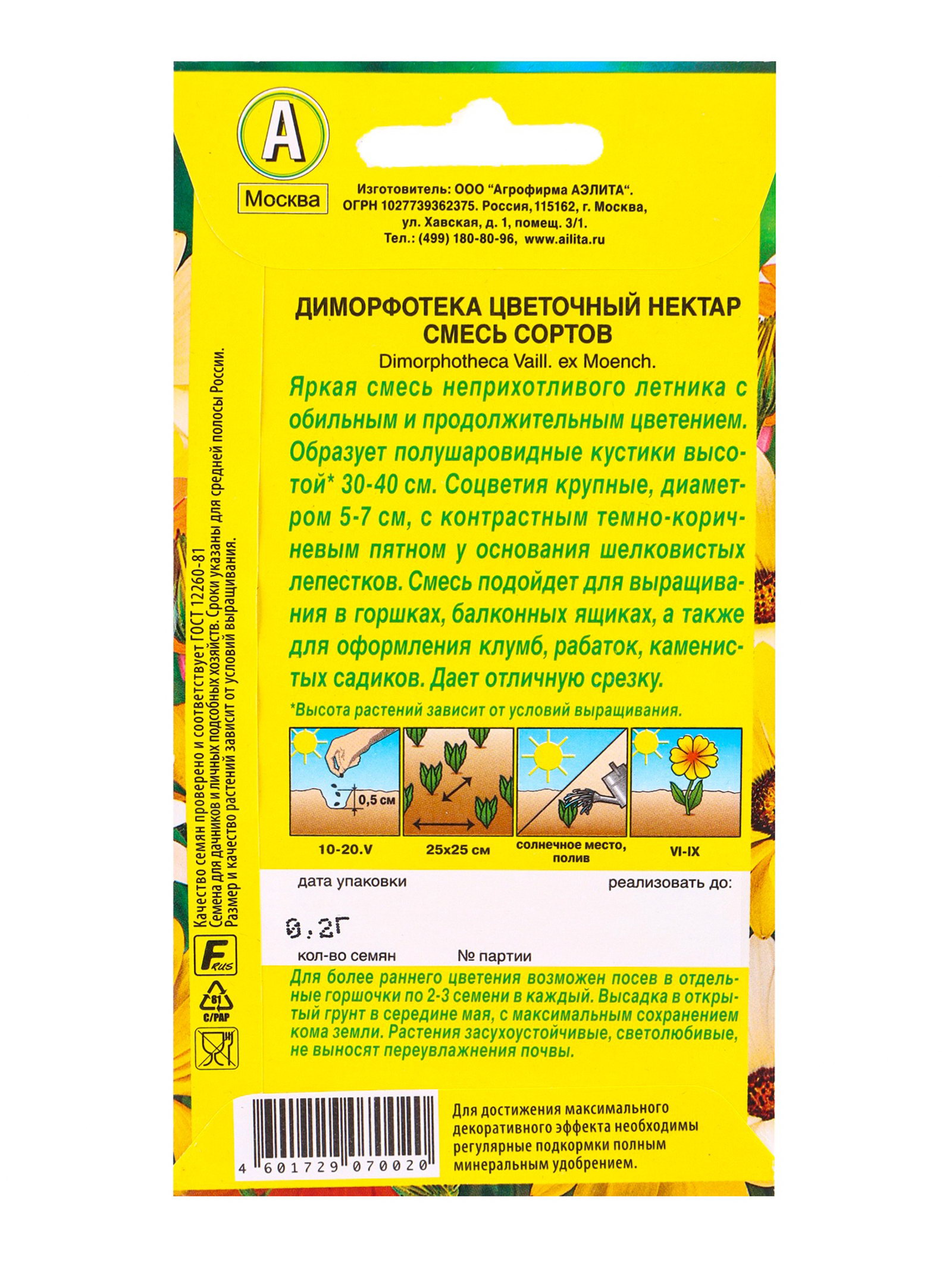 Семена цветов Диморфотека Цветочный нектар, смесь сортов, Ц/П,0.2 г, Агрофирма АЭЛИТА, Нидерланды
