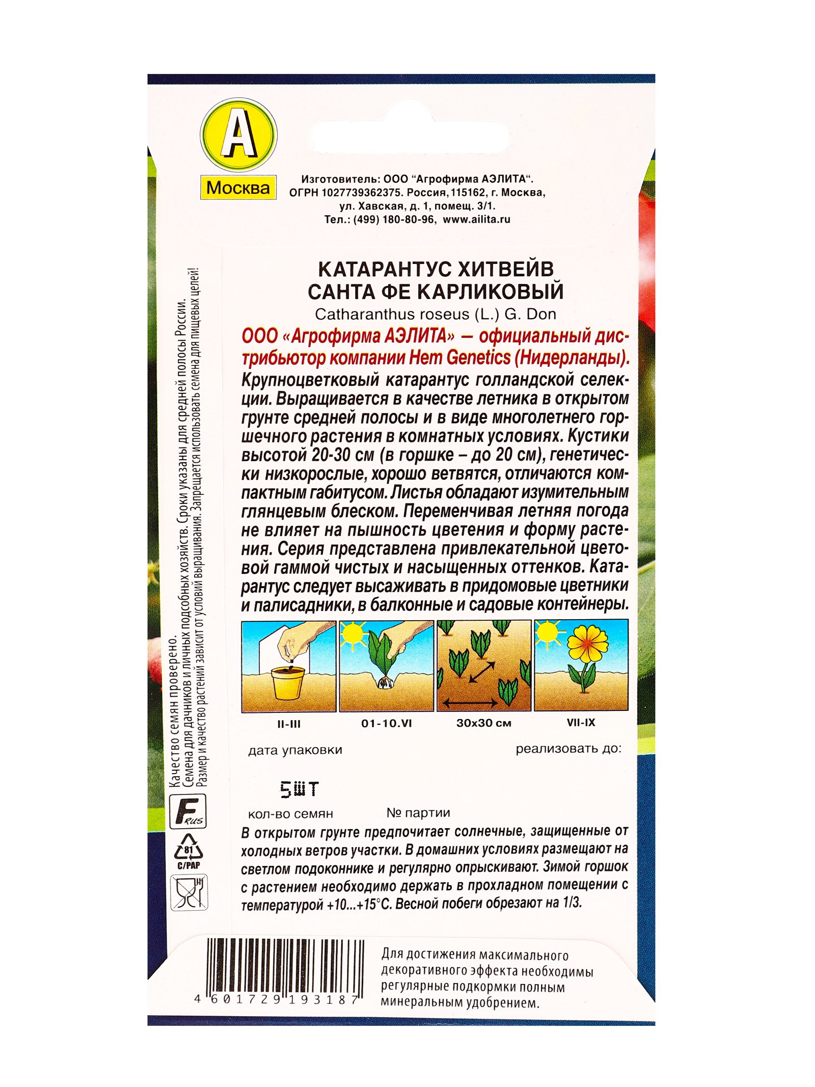 Семена цветов Катарантус Хитвейв санта фе карликовый Спецсерия Hem Genetics, Ц/П,5 шт., Агрофирма АЭЛИТА, Индонезия