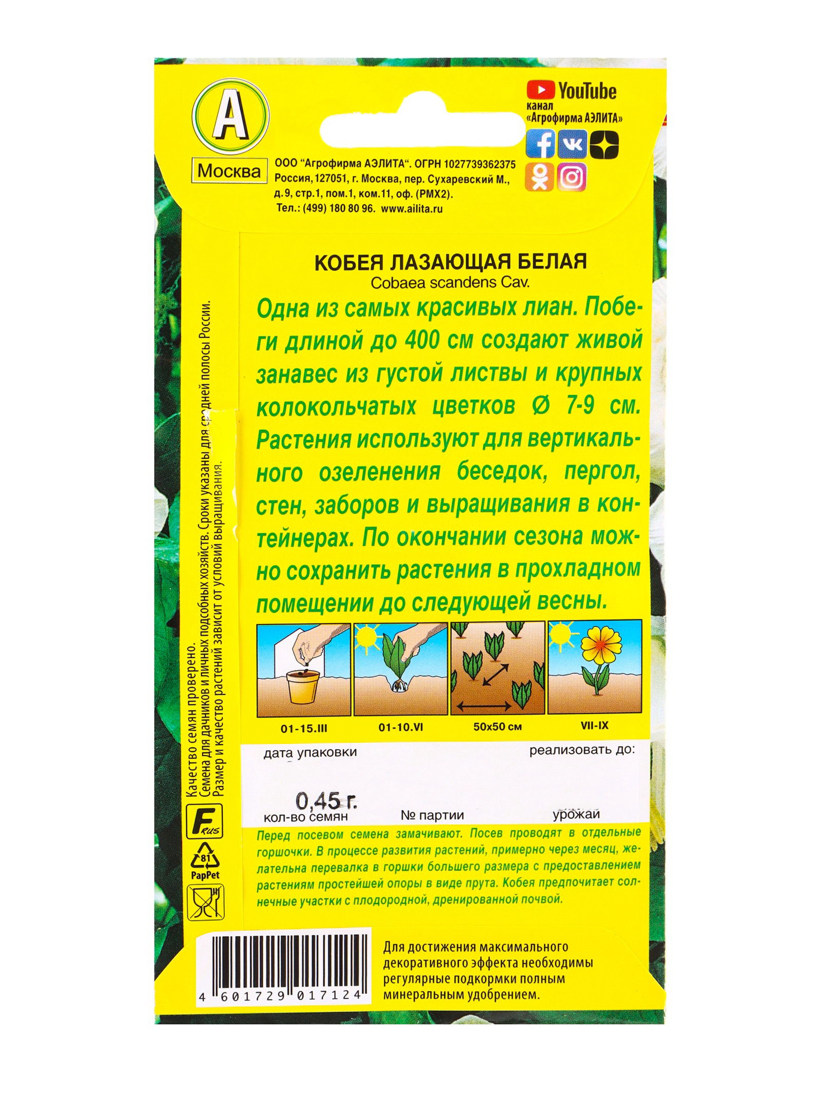 Семена цветов Кобея белая, Ц/П,0.45 г, Агрофирма АЭЛИТА, Нидерланды