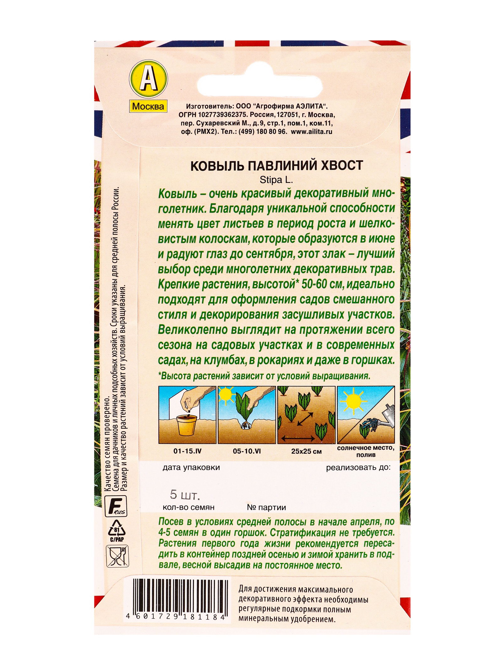 Семена цветов Ковыль Павлиний хвост Мн Британская коллекция цветов, Ц/П,5 шт., Агрофирма АЭЛИТА, Германия