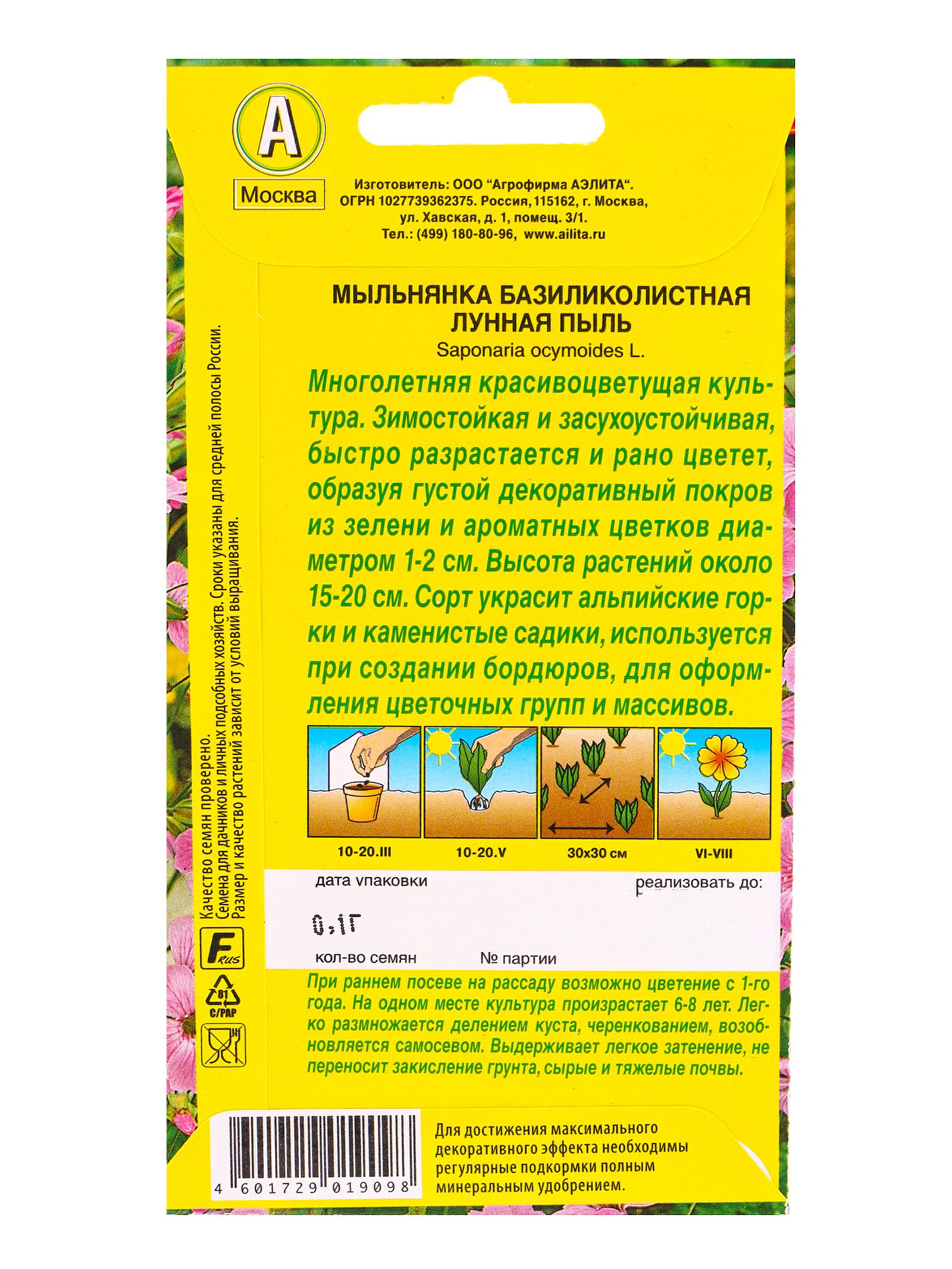 Семена цветов Мыльнянка Лунная пыль базиликолистная Мн, Ц/П,0.1 г, Агрофирма АЭЛИТА, Нидерланды