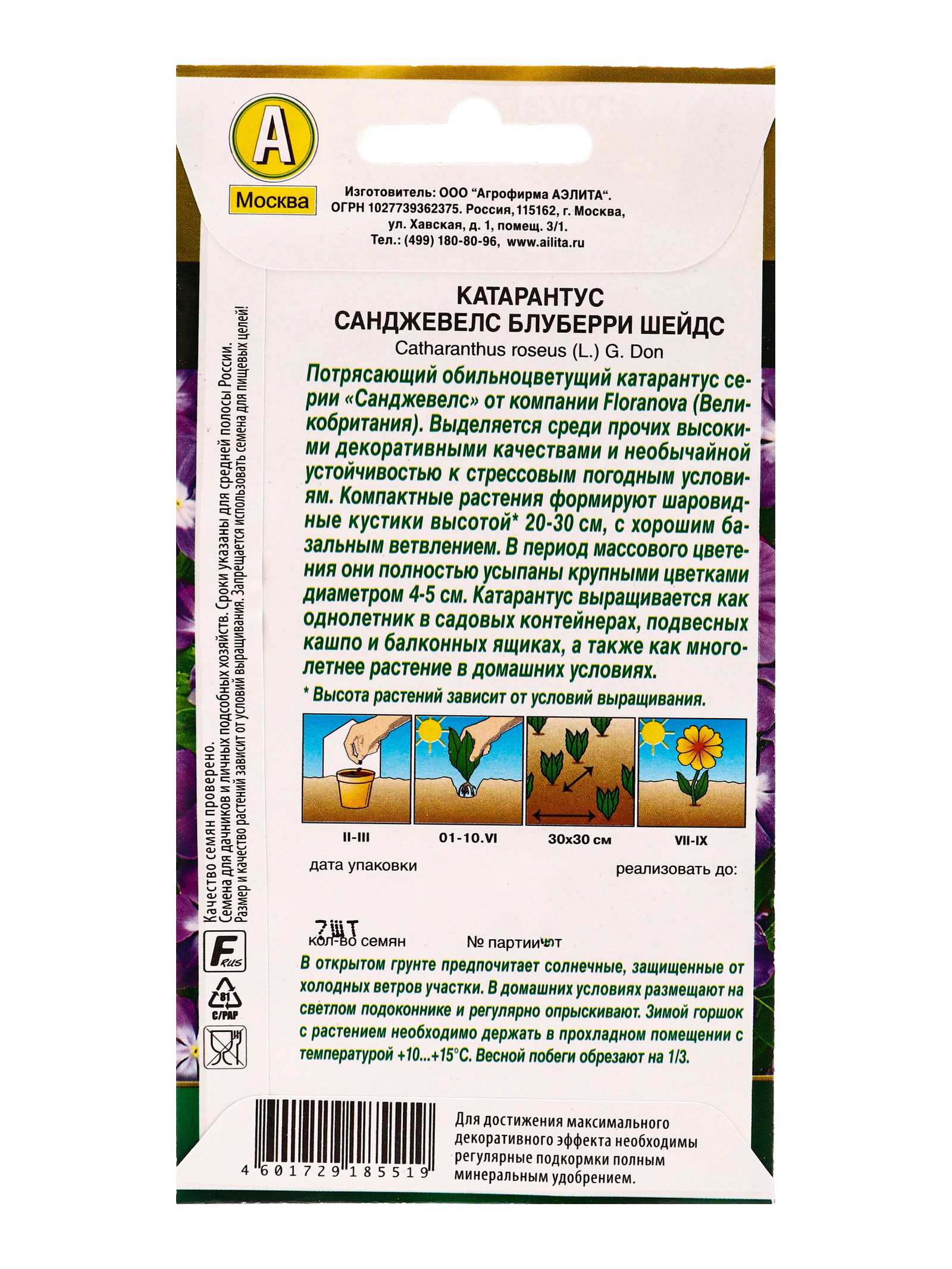 Семена цветов Катарантус Санджевелс блуберри шейдс С. Floranova Золотая серия, Ц/П,7 шт., Агрофирма АЭЛИТА, Индия