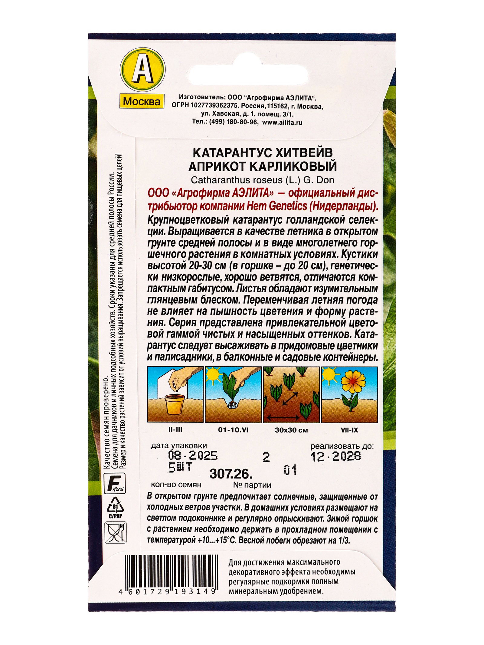 Семена цветов Катарантус Хитвейв априкот карликовый Спецсерия Hem Genetics, Ц/П,5 шт., Агрофирма АЭЛИТА, Индия