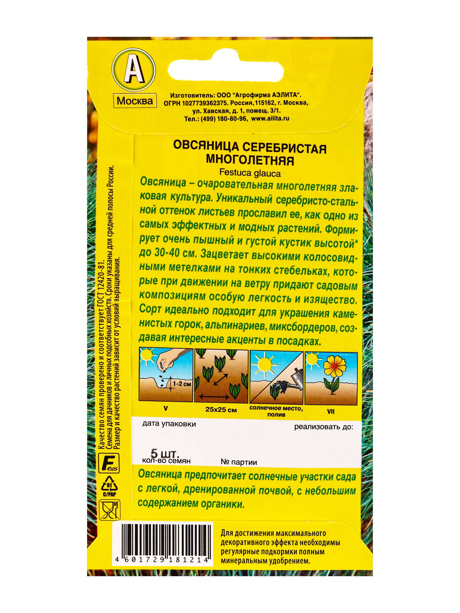 Семена цветов Овсяница Серебристая многолетняя Мн, Ц/П,5 шт., Агрофирма АЭЛИТА, Нидерланды