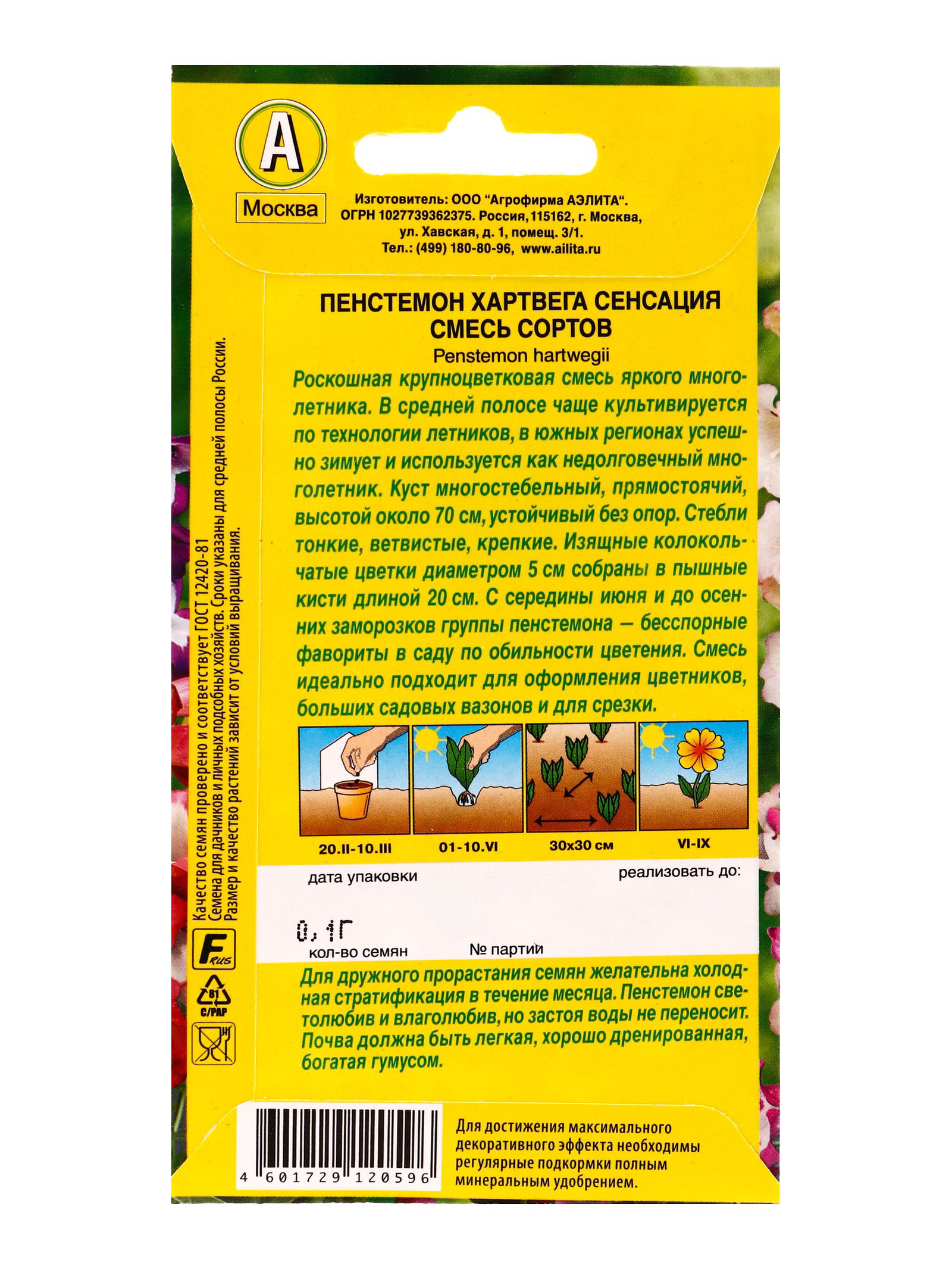 Семена цветов Пенстемон Сенсация, смесь сортов, Ц/П,0.1 г, Агрофирма АЭЛИТА, Германия