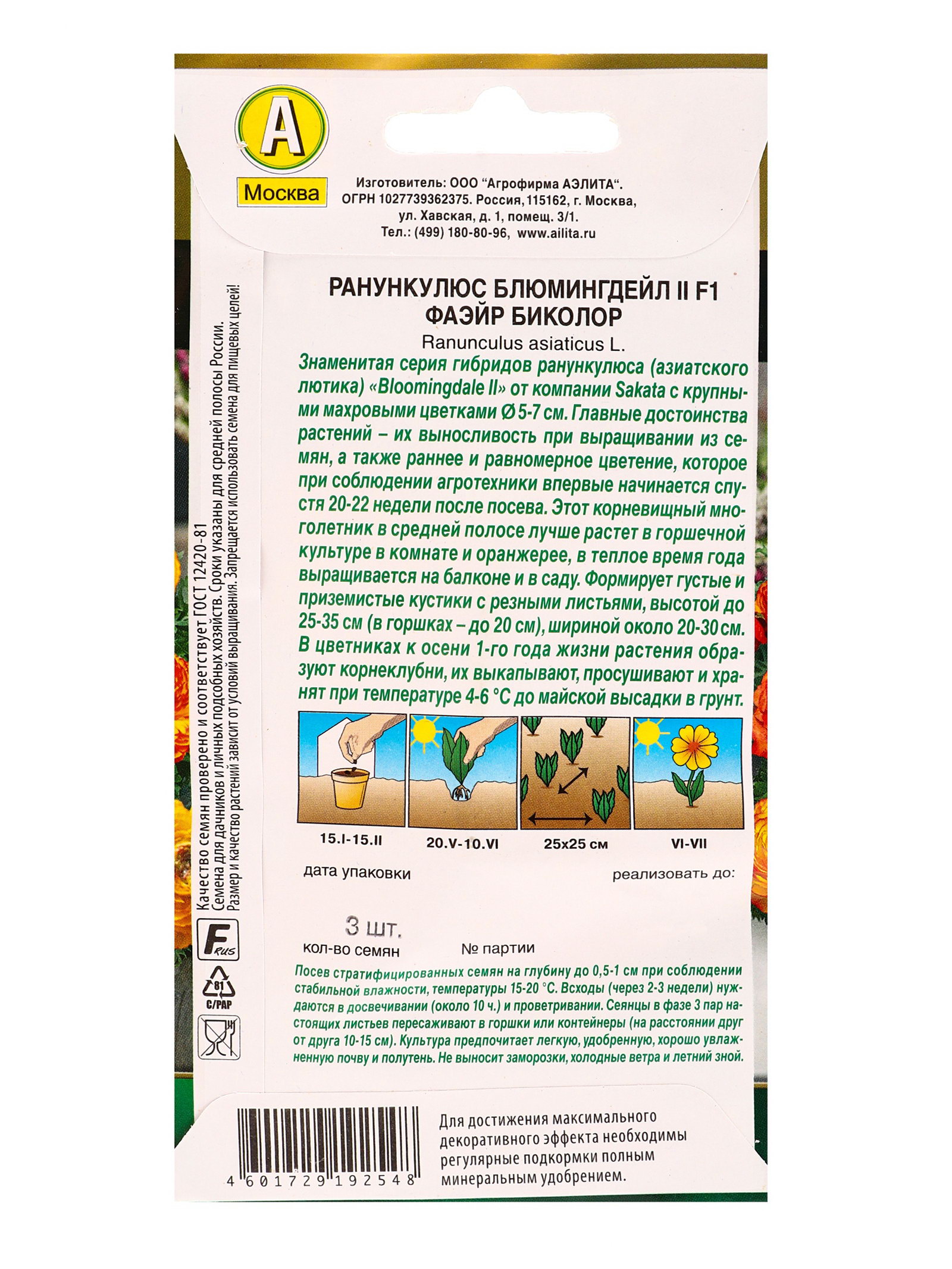 Семена цветов Ранункулюс Блюмингдейл II F1 фаэйр биколор Мн С. Sakata Золотая серия, Ц/П,3 шт. 10945, Агрофирма АЭЛИТА, Япония
