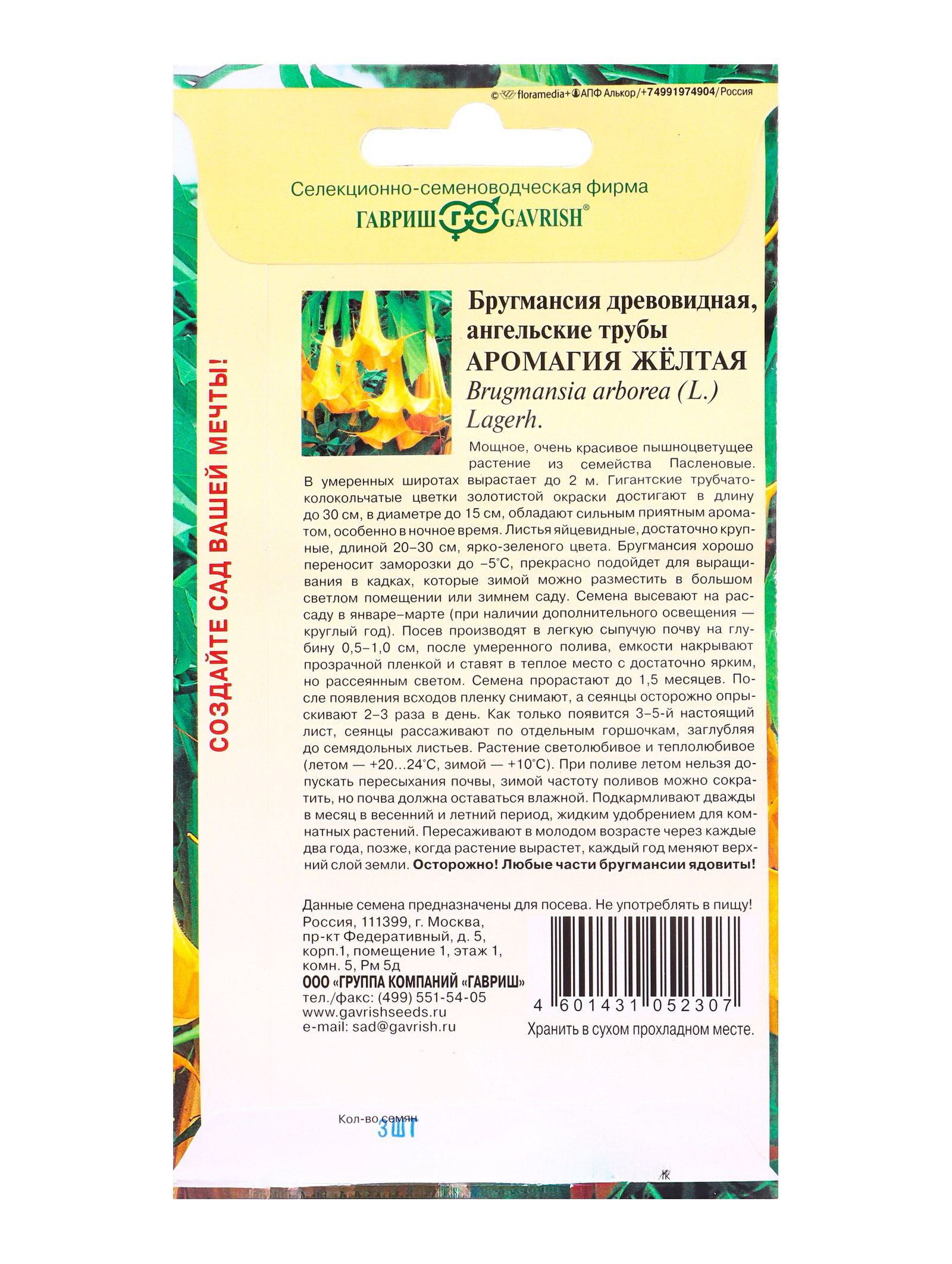 Семена Бругмансия Аромагия желтая 3 шт., Гавриш, Россия