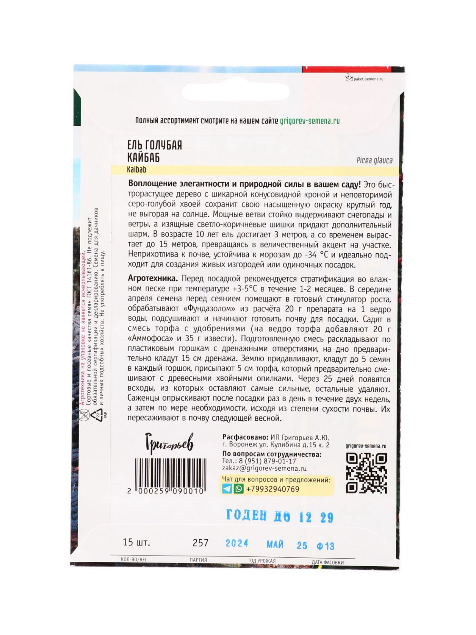 Семена цветов Ель Кайбаб голубая, Григорьев, Россия