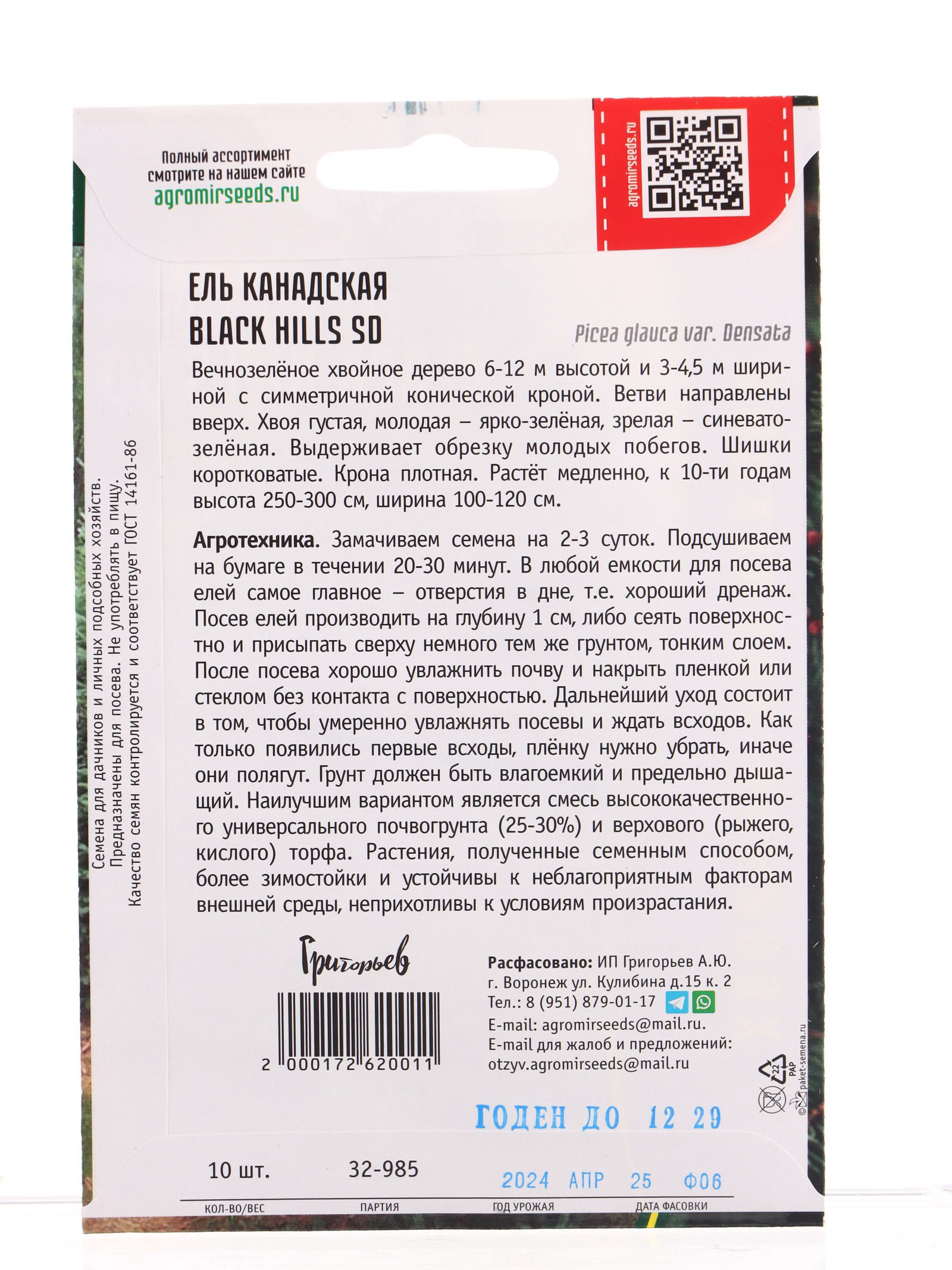 Семена Ель Black Hills SD канадская 10 шт. 12.29 гр, Григорьев, Россия