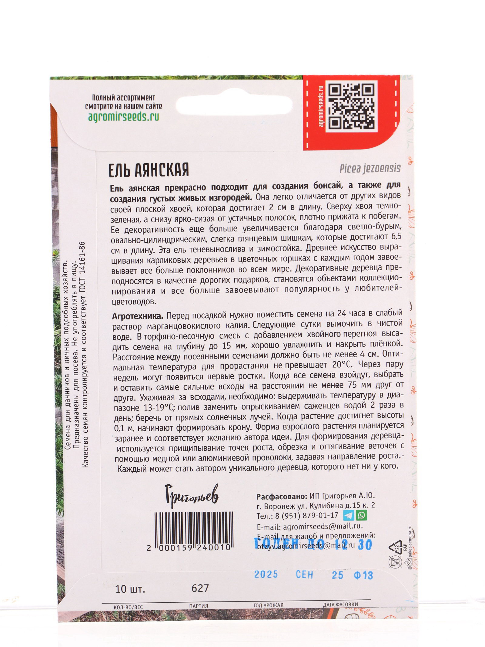 Семена цветов Ель Аянская 10 шт. 12.29 гр, Григорьев, Россия