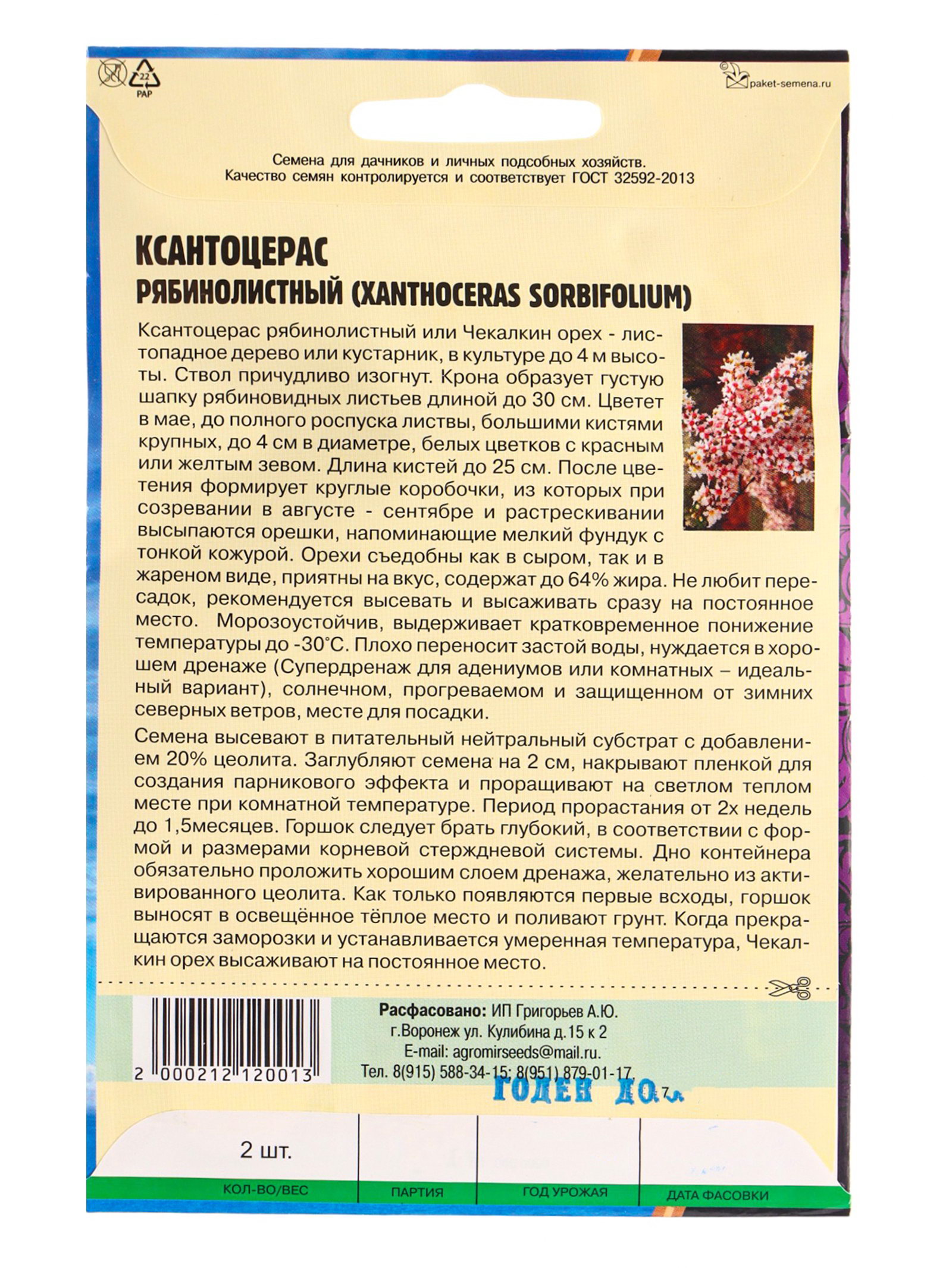 Семена Ксантоцерас Рябинолистный, Григорьев, Россия