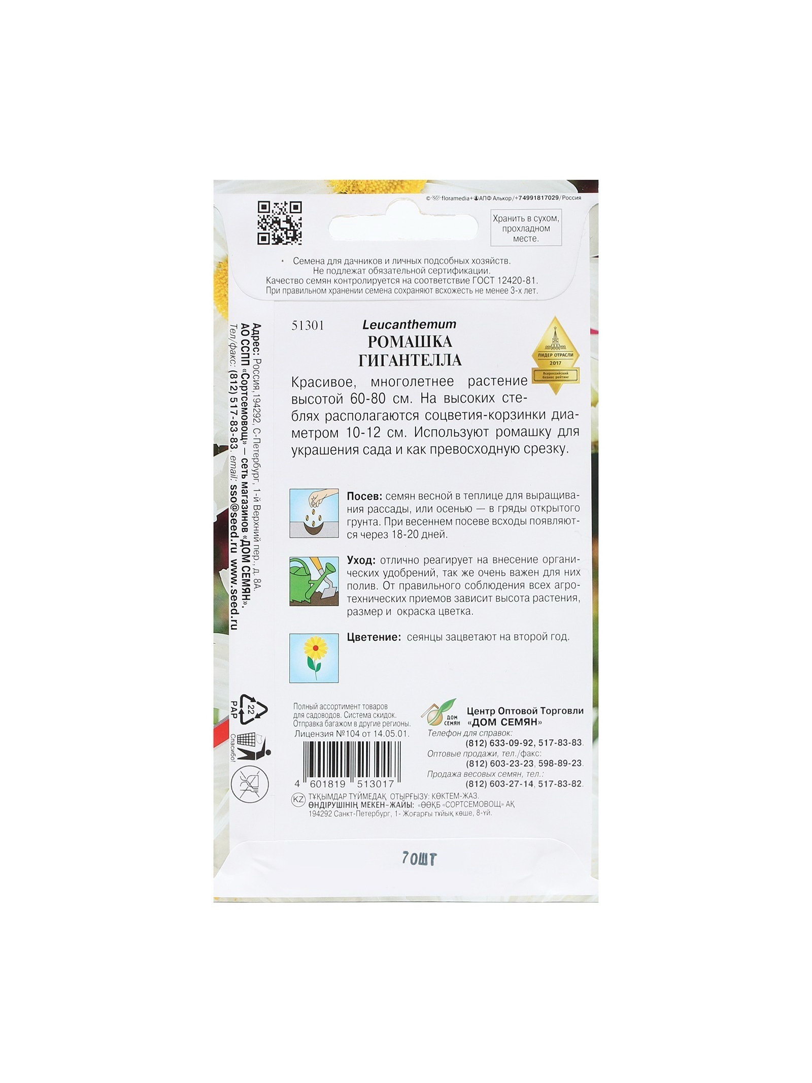 Набор семян Ромашка "Гигантелла", 5 шт., 9x17x1 см., Мой выбор, Россия