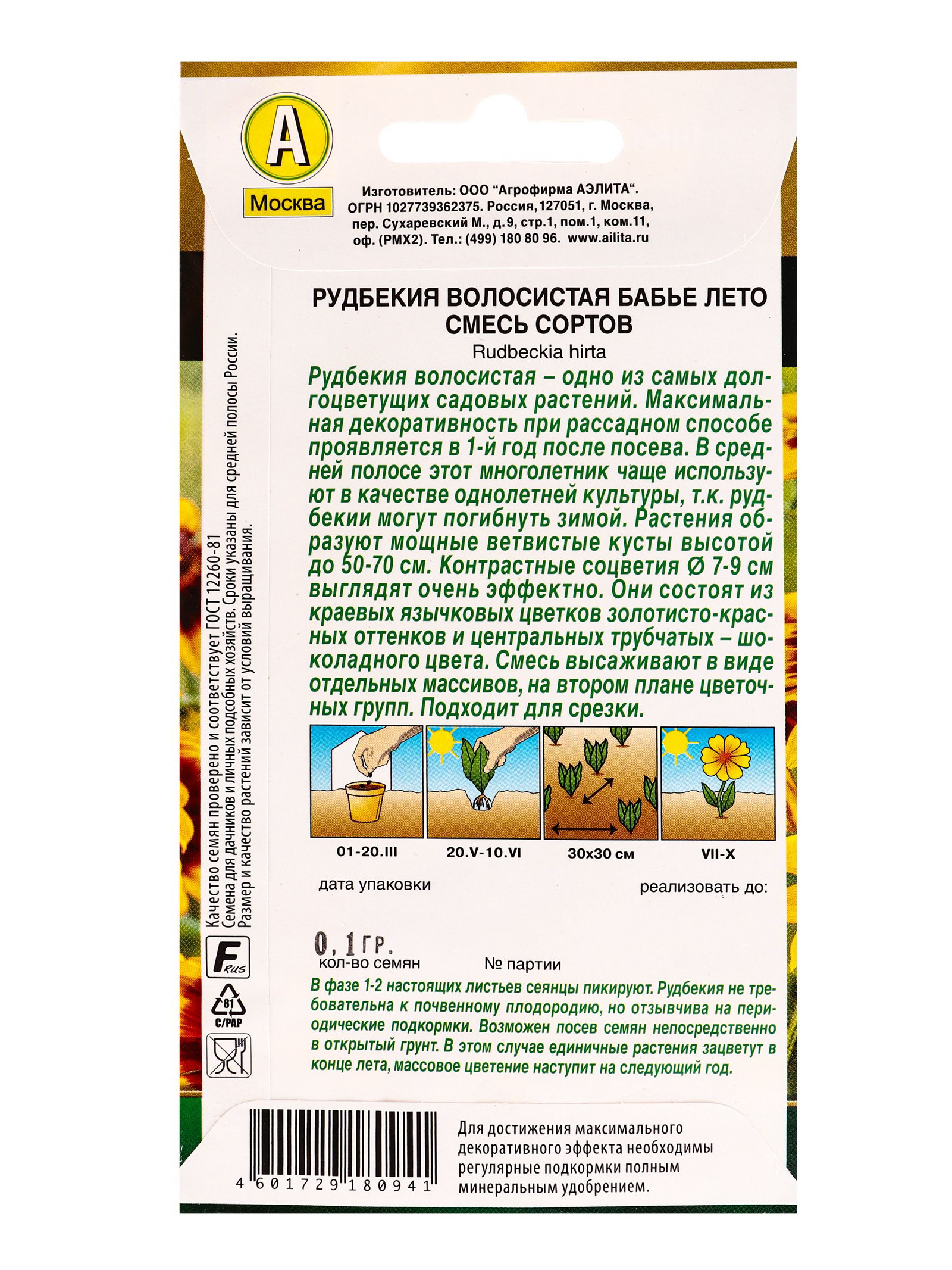 Семена цветов Рудбекия Бабье лето, смесь сортов Золотая серия, Ц/П,0.1 г, Агрофирма АЭЛИТА, Нидерланды