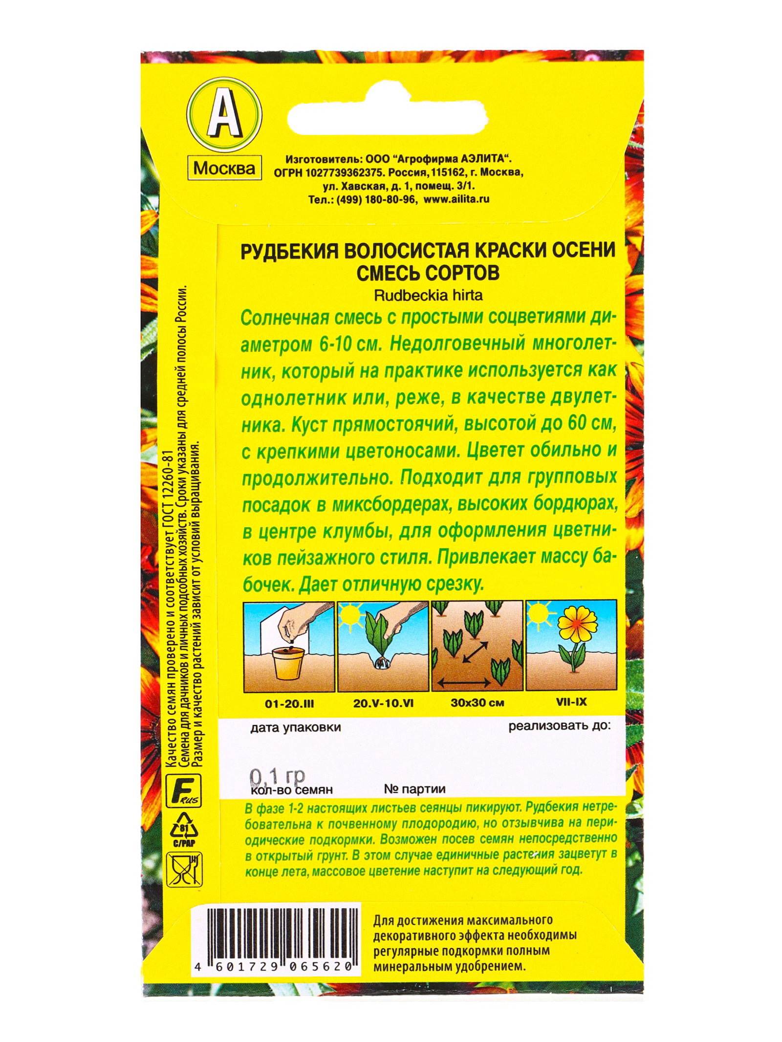 Семена цветов Рудбекия Краски осени, смесь сортов, Ц/П,0.1 г, Агрофирма АЭЛИТА, Нидерланды