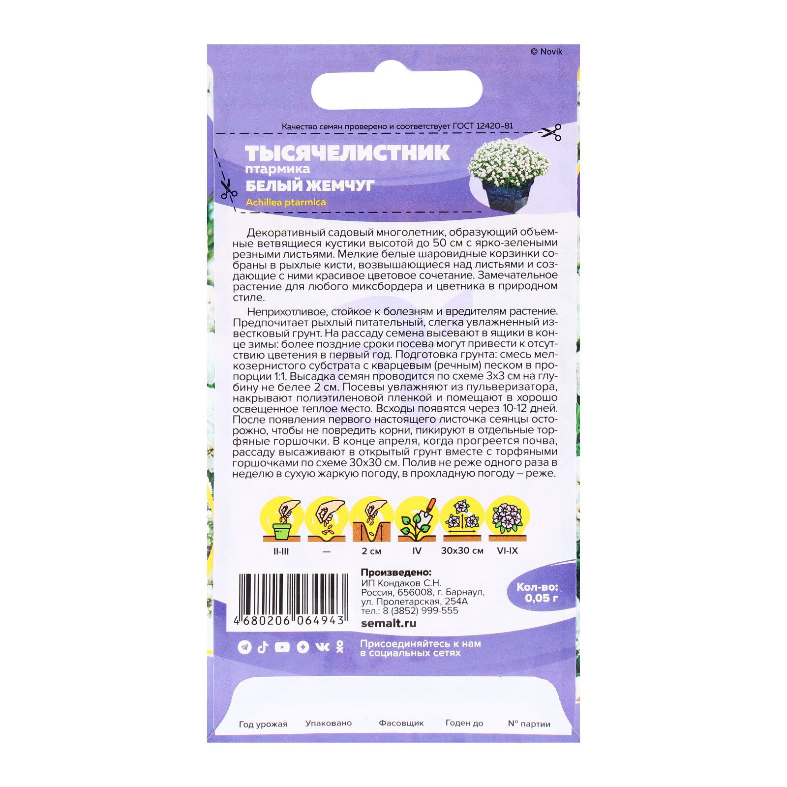 Семена Тысячелистник "Белый жемчуг", ц/п, 0.05 гр, Семена Алтая, Россия