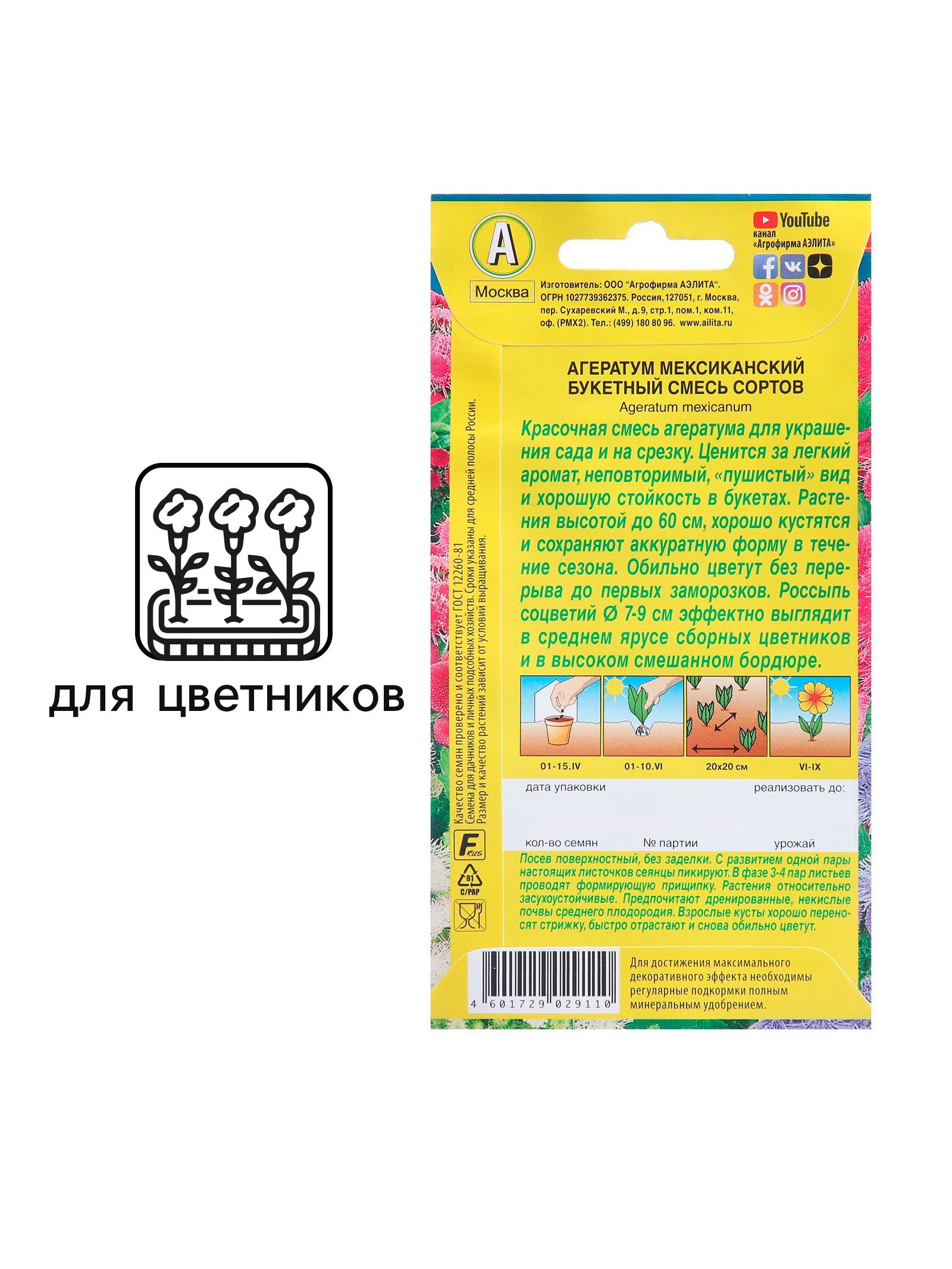 Семена цветов Агератум "Букетный", смесь окрасок, О, 0.02 г, Агрофирма АЭЛИТА, Нидерланды