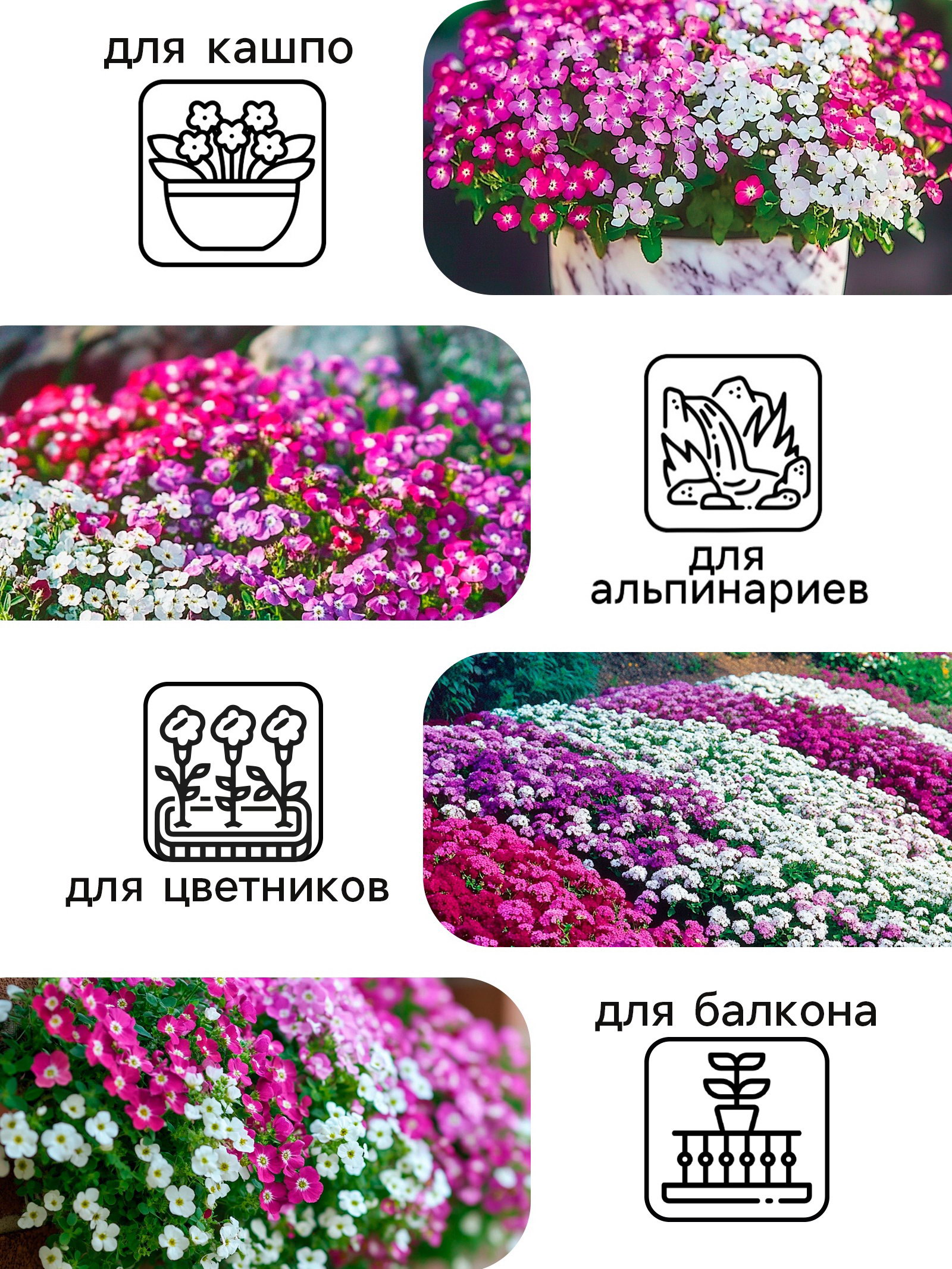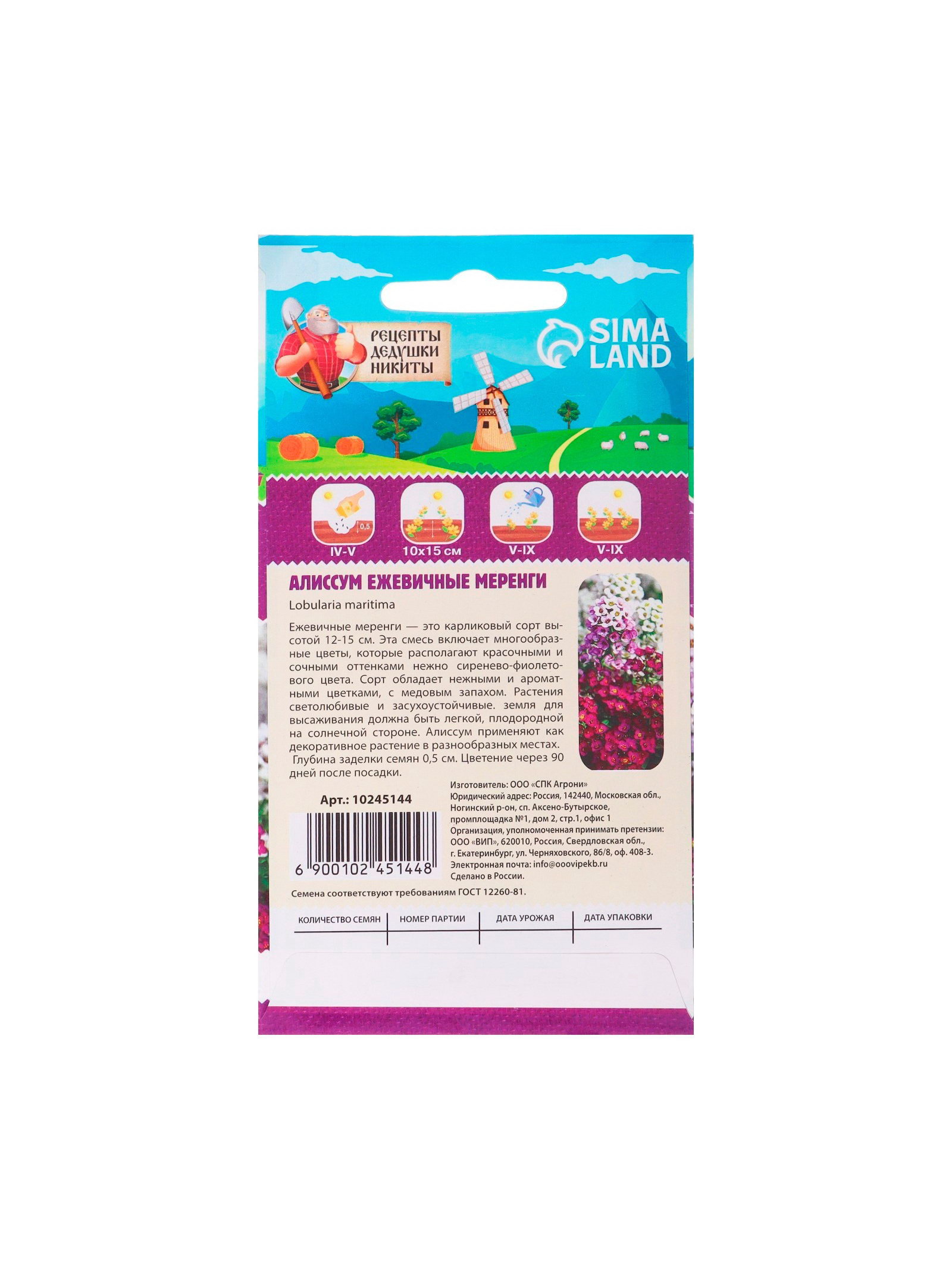 Семена цветов Алиссум "Ежевичные меренги", 5 шт., Рецепты дедушки Никиты, Россия