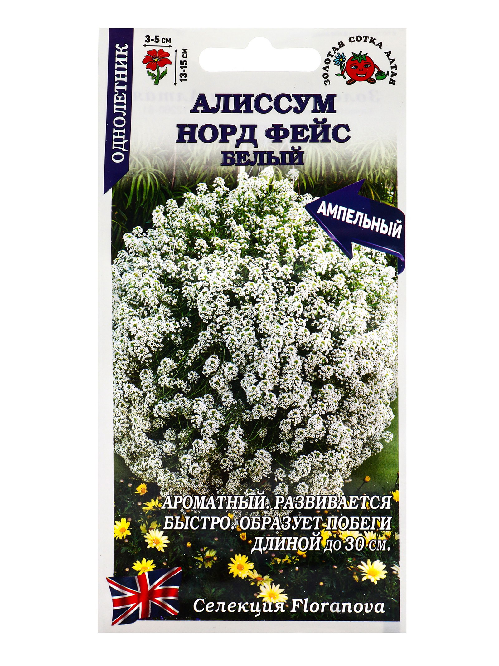 Семена Алиссум "Норд фейс белый", 0.01 г, Золотая Сотка Алтая, Россия