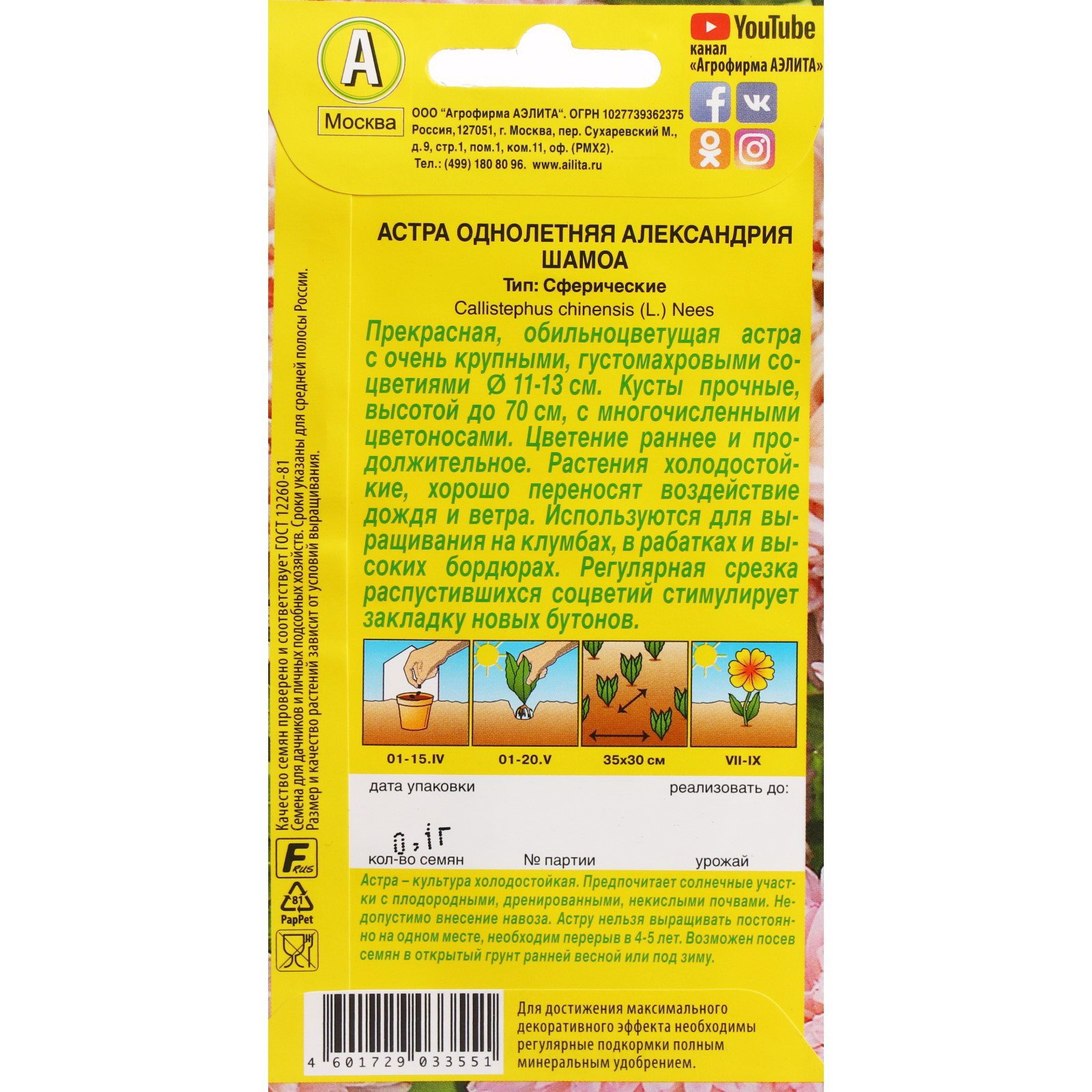 Семена Цветов Астра "Александрия шамоа", ц/п, 0.1 г, Агрофирма АЭЛИТА, Нидерланды