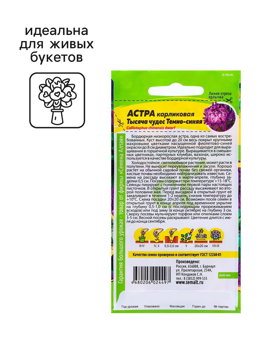 Семена цветов Астра карликовая "Тысяча чудес", тёмно-синяя, 0.2 г, однолетник, Семена Алтая, Россия