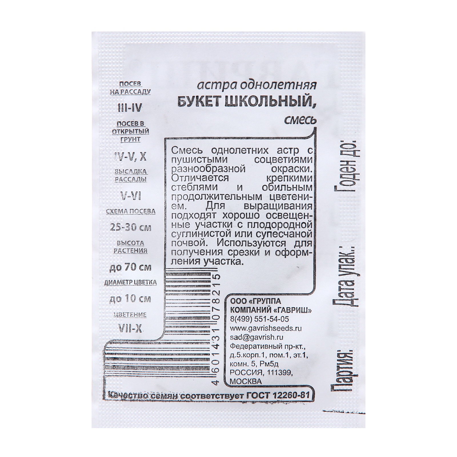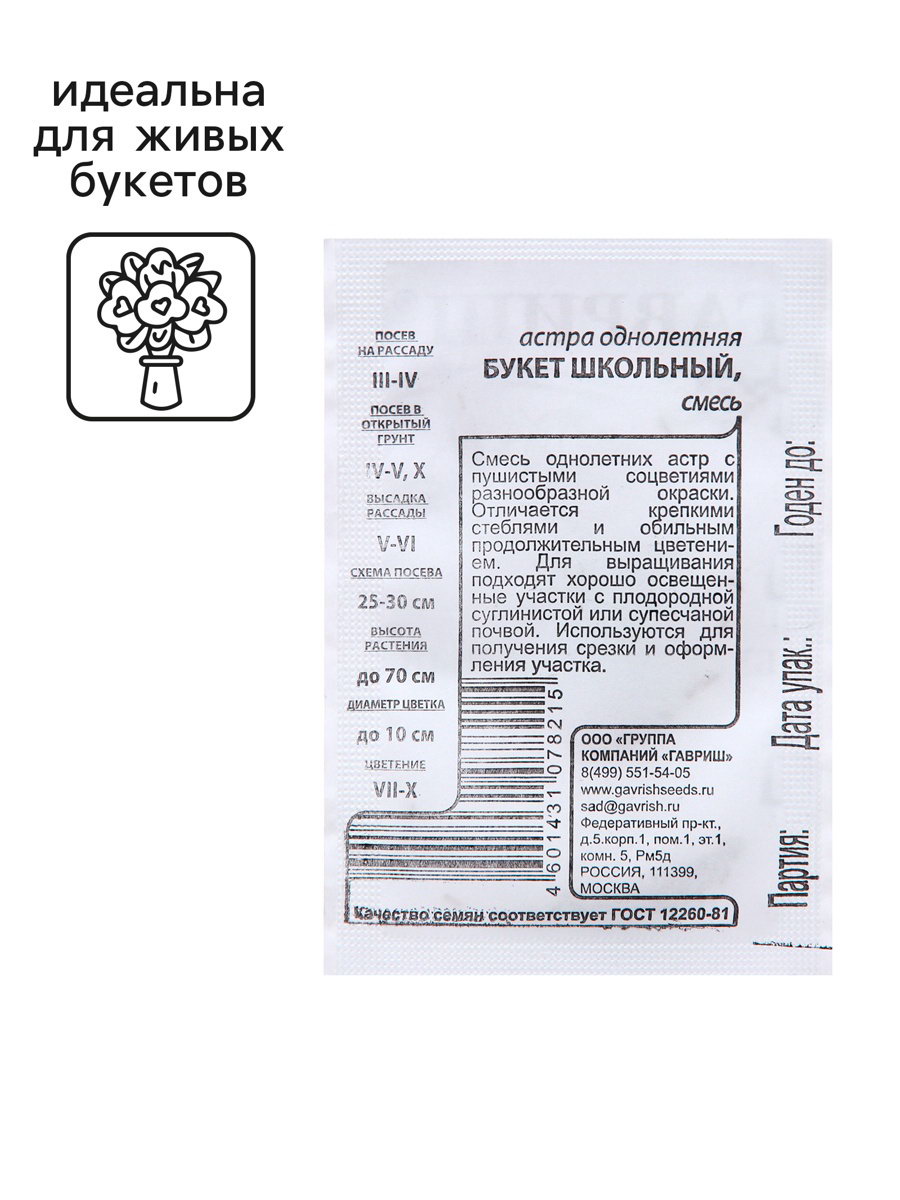 Семена Астра "Букет", однолетняя, 0.1 г б/п, Гавриш, Россия