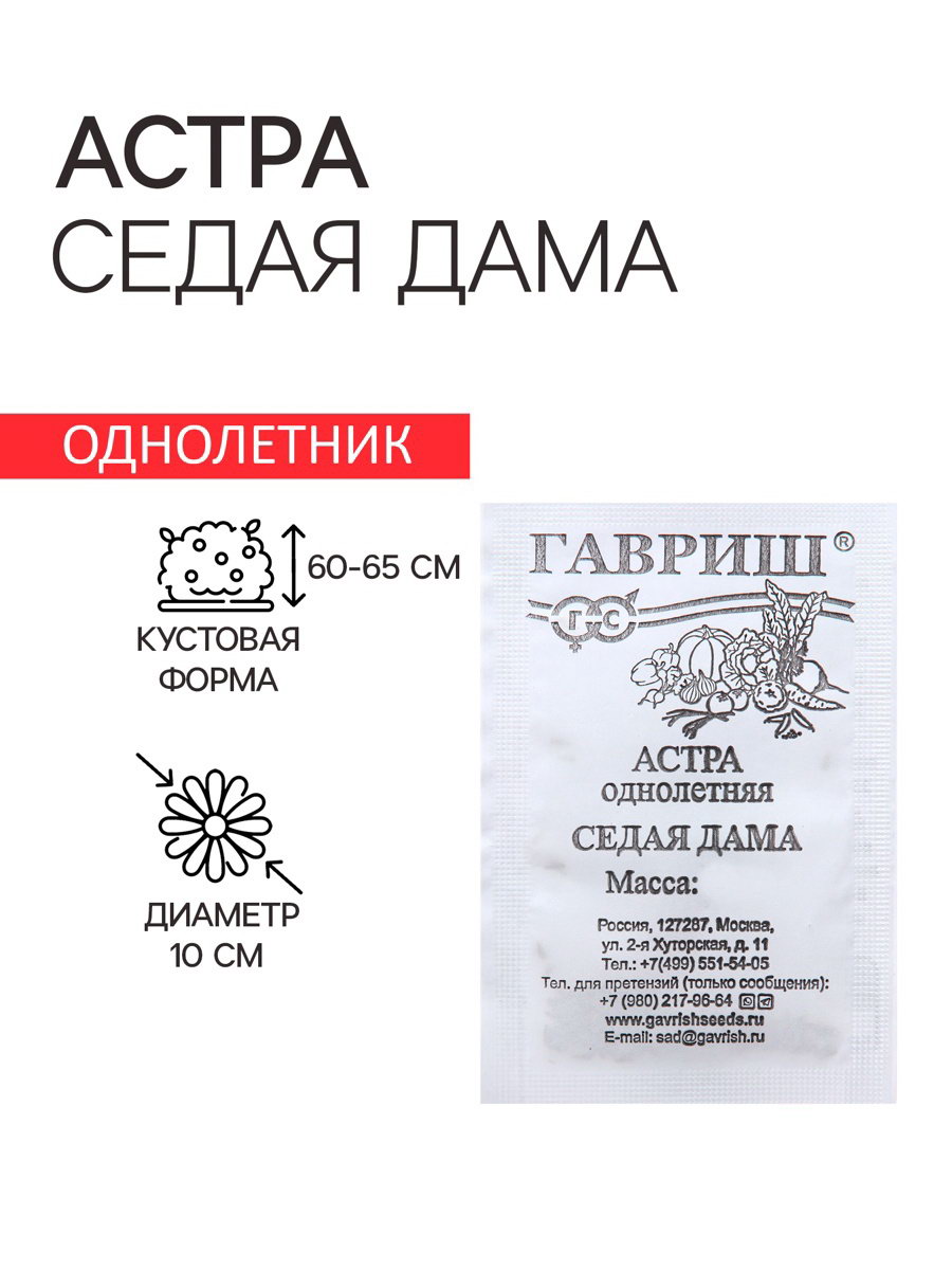 Семена Астра "Седая дама", однолетняя 0.1 г б/п, Гавриш, Россия