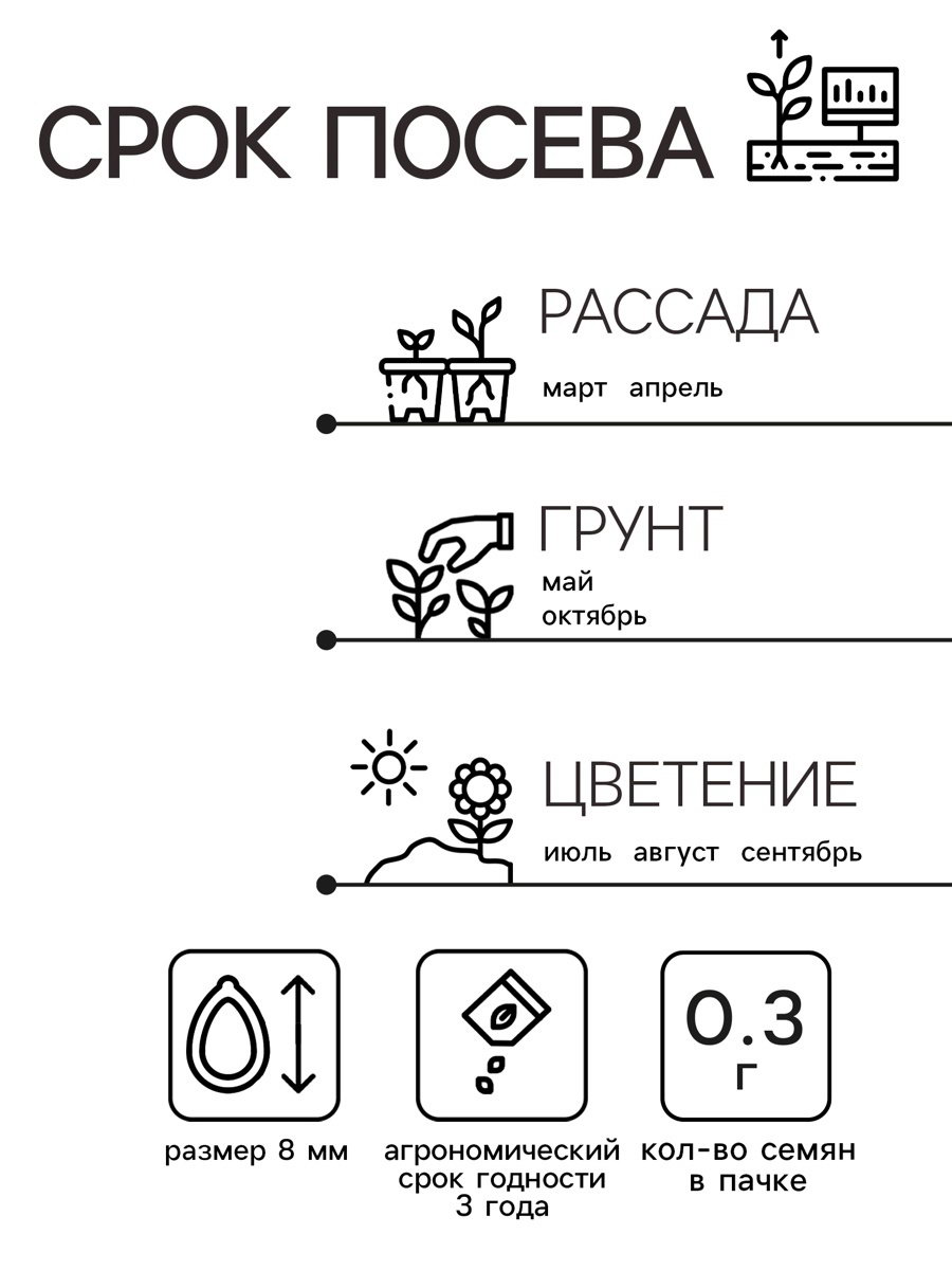 Вид: Астра, Семечки Посев на рассаду: Апрель, Март Цветение период: Август, Июль, Июнь, Сентябрь Высота растений: 30-60 см, До 30 см Размер упаковки: 8 x 0.2 x 15 см. Температурное ограничение: Нет Цвет: МИКС Сухоцвет: Нет Махровые: Да Агрономический срок годности, лет: 3 Разновидность: Цветущее Вегетация: Многолетники Назначение: Для создания цветников, клумбы Особенности выращивания: Открытый грунт Отношение к свету: Светолюбивые Нуждаются ли в стратификации: Нет Посев (посадка) в грунт: Май По форме куста: Кустовая По форме куста: Кустовая tnved: 1209999900 Семена астр "Ковёр Радуга" станут отличным выбором для тех, кто мечтает украсить свой сад ярким и разнообразным цветением. Эти многолетние красавицы смешанных оттенков создадут настоящий цветник на вашей клумбе, радуя глаз всё лето. Преимущества