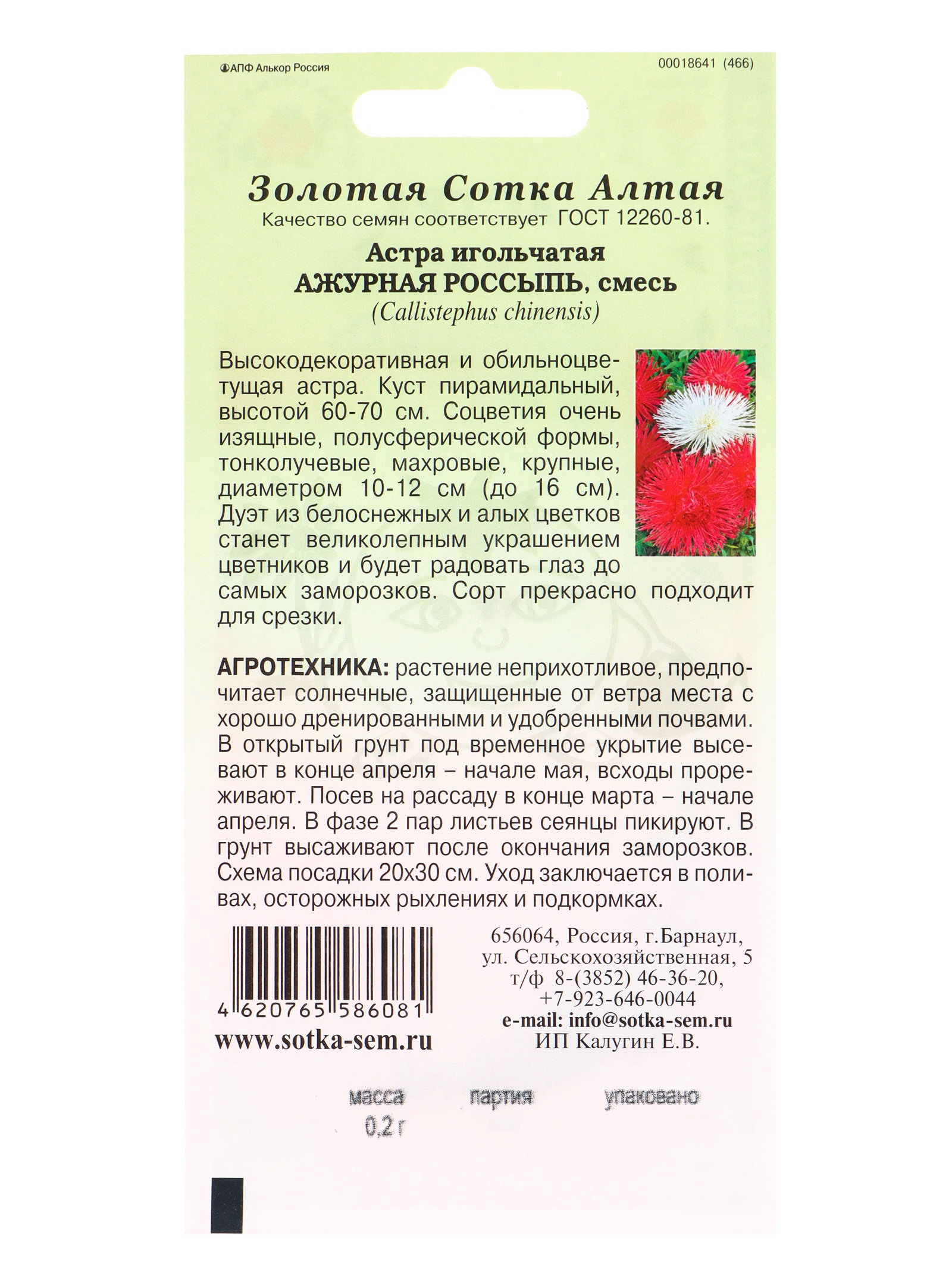 Семена Астра "Ажурная Россыпь смесь", 0.2 г, Золотая Сотка Алтая, Россия