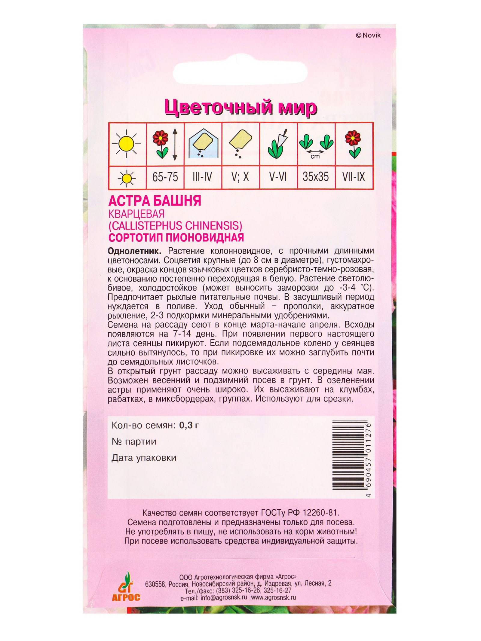 Семена Астра Башня Кварцевая 0.3 г, Агросс, Россия