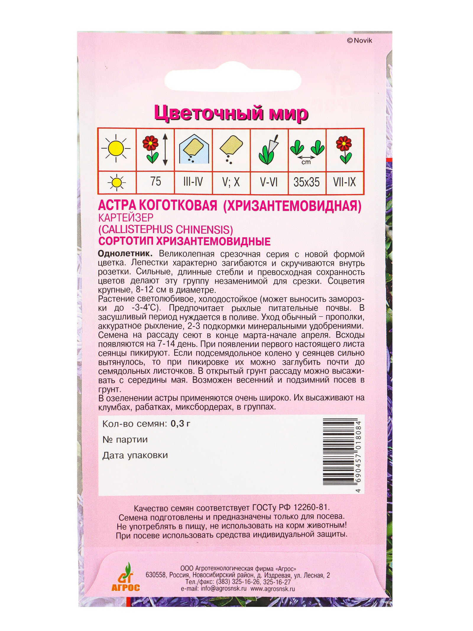 Семена Астра Коготковая Картейзер 0.3 г, Агросс, Россия