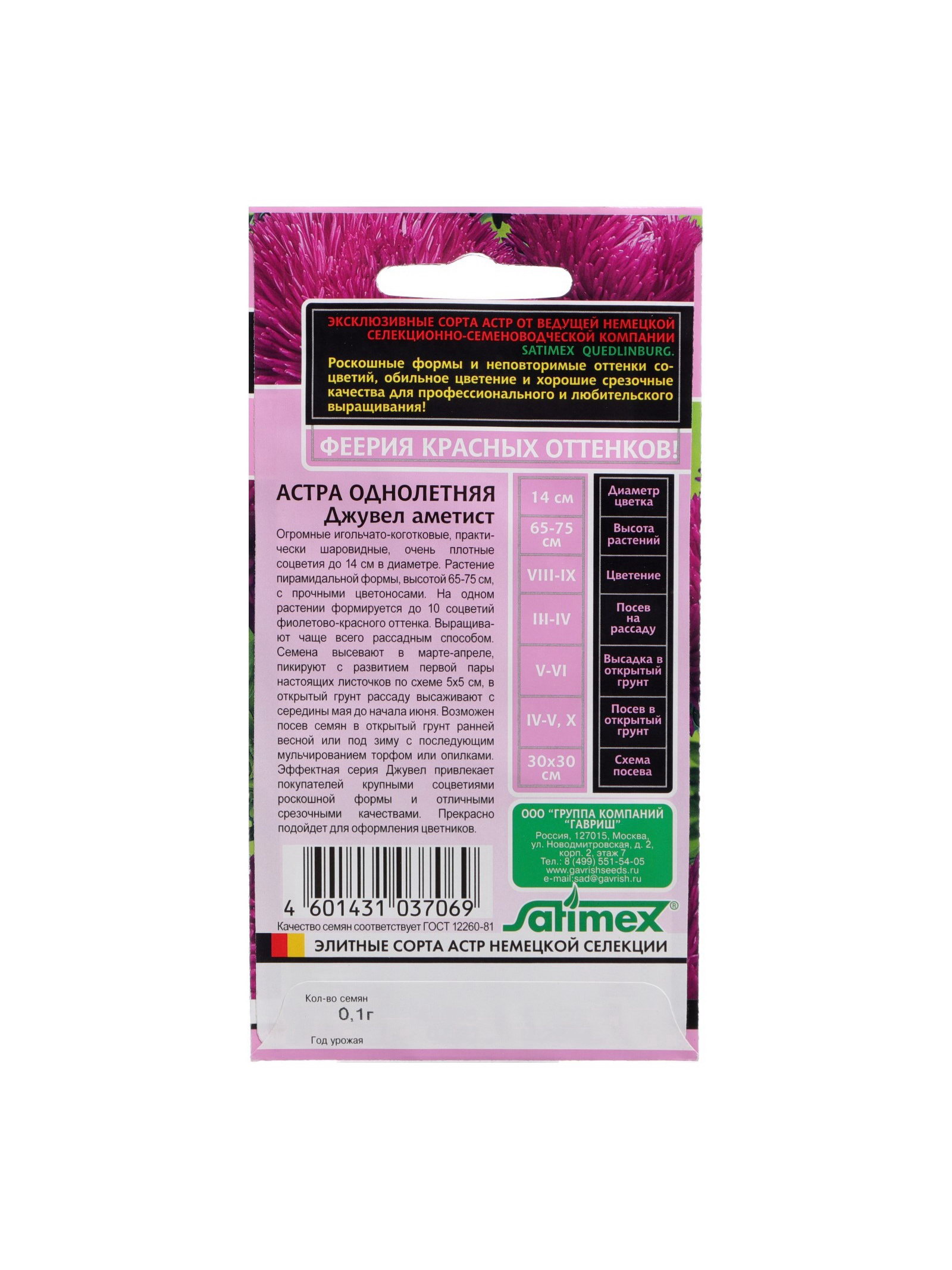 Набор семян Астра игольчато-коготковая "Джувел Аметист", однолетняя, 5 шт., 9x17x1 см., Мой выбор, Россия