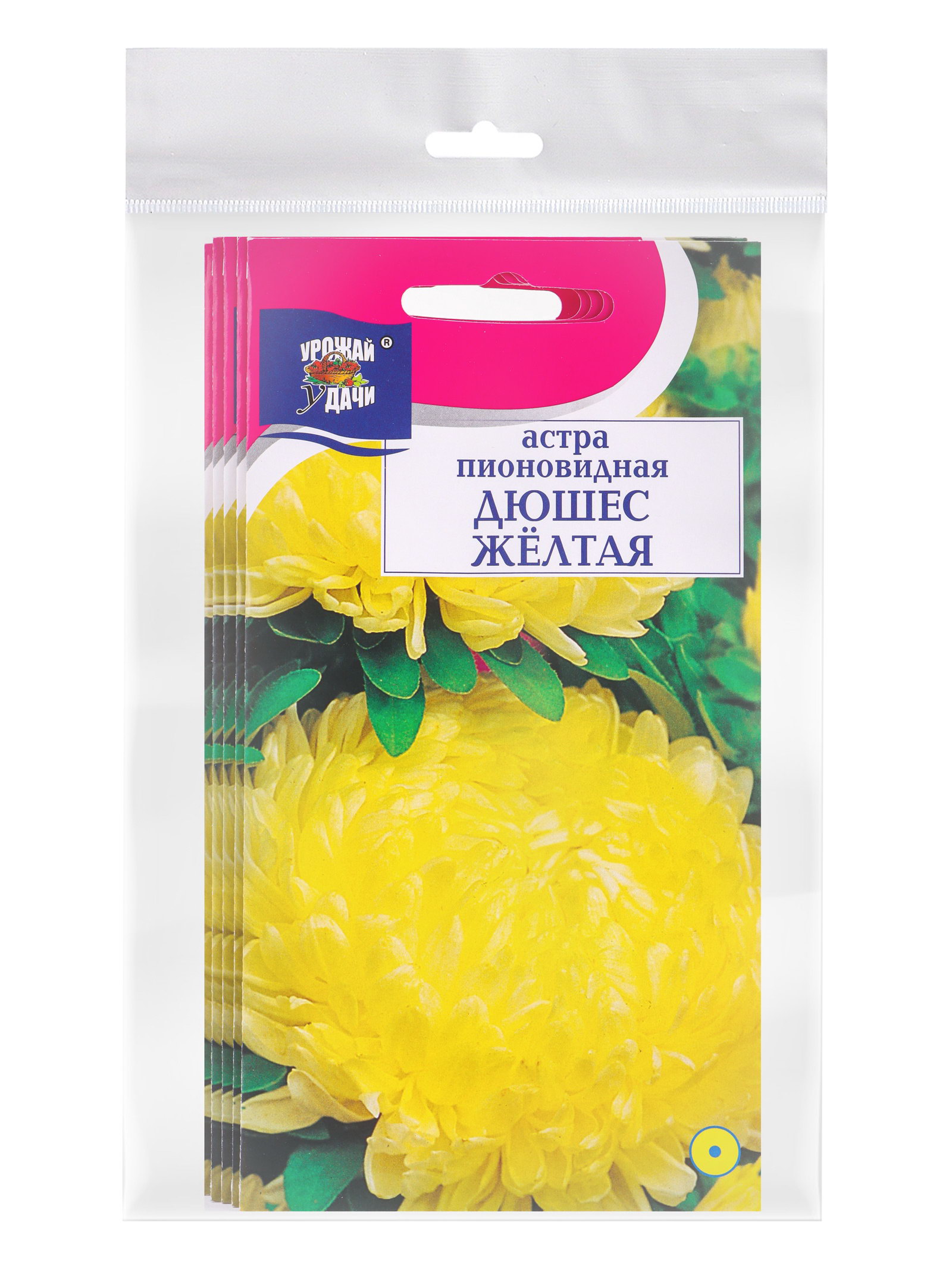Набор семян Астра пионовидная "Дюшес", желтая, 5 шт., 9x17x1 см., Мой выбор, Россия