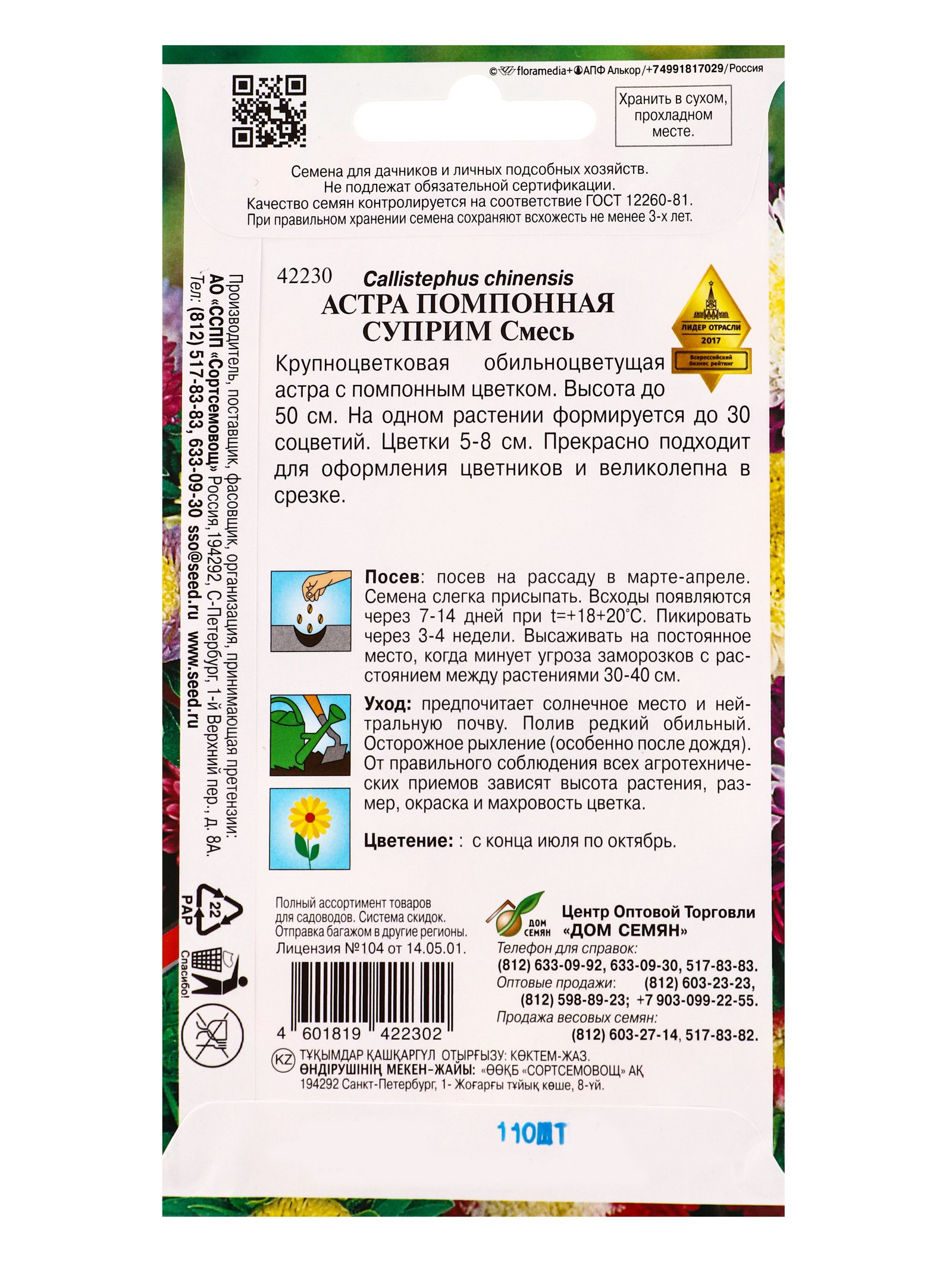 Набор семян Астра "Суприм" смесь, 110 семян, 15x17x5 см., Мой выбор, Россия