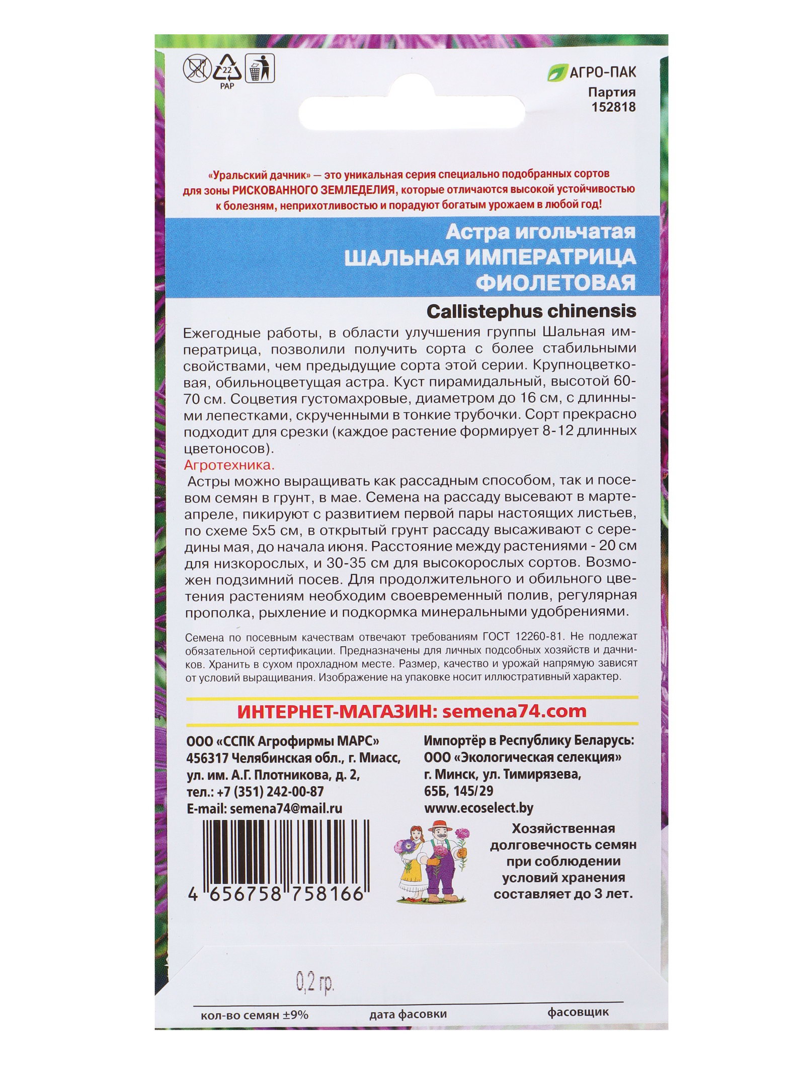 Семена Цветы Астра игольчатая Шальная императрица фиолетовая, Уральский Дачник, Россия