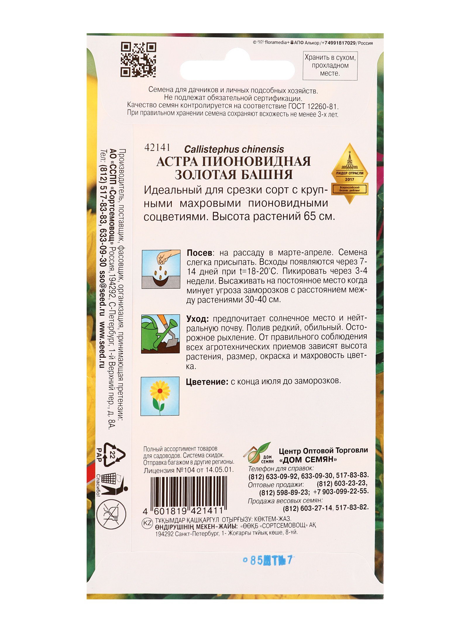 Набор семян Астра пионовидная "Золотая Башня", 85 семян, 15x17x5 см., Мой выбор, Россия