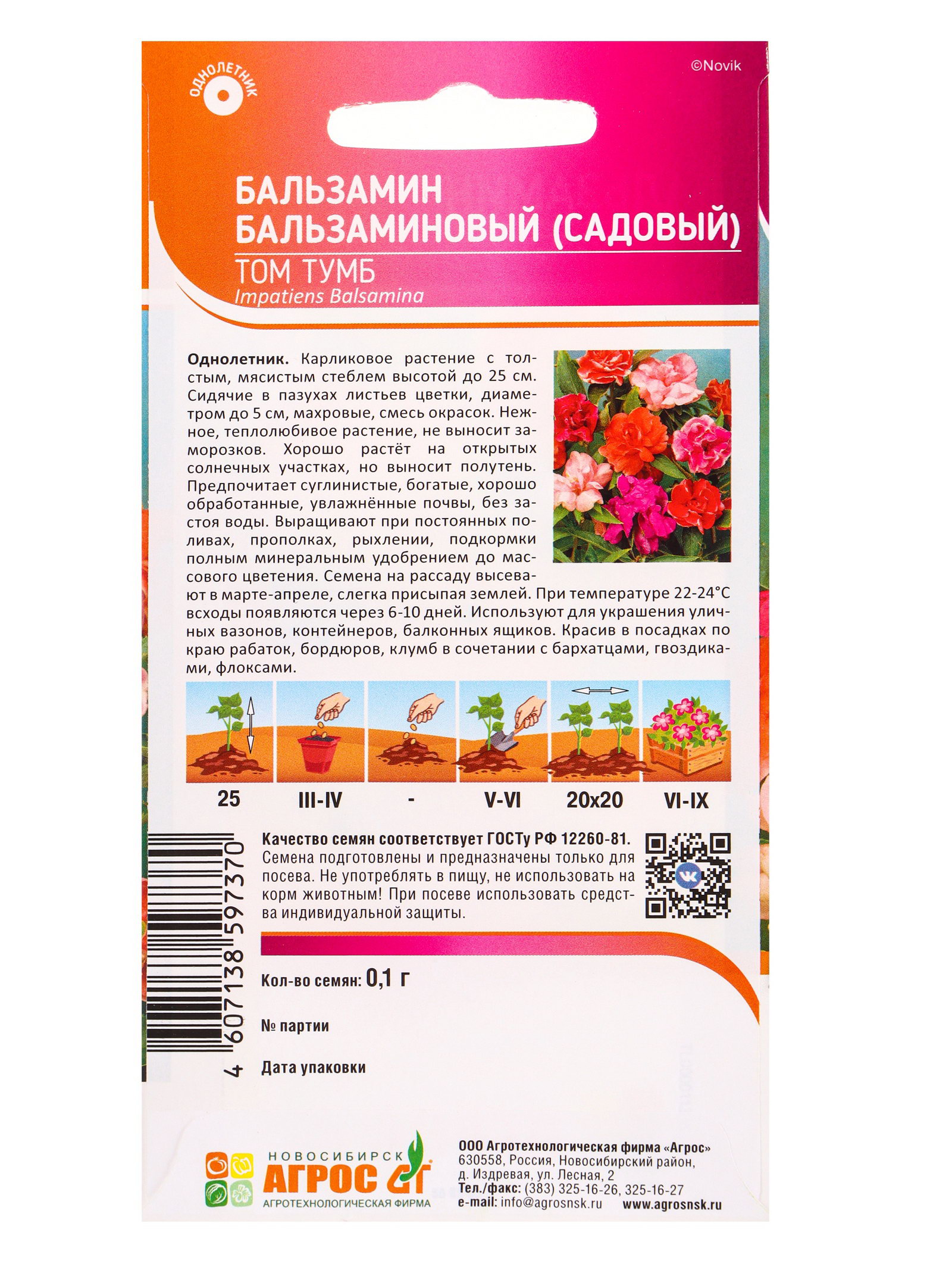 Семена Бальзамин Том Тумб 0.1 г, Агросс, Россия