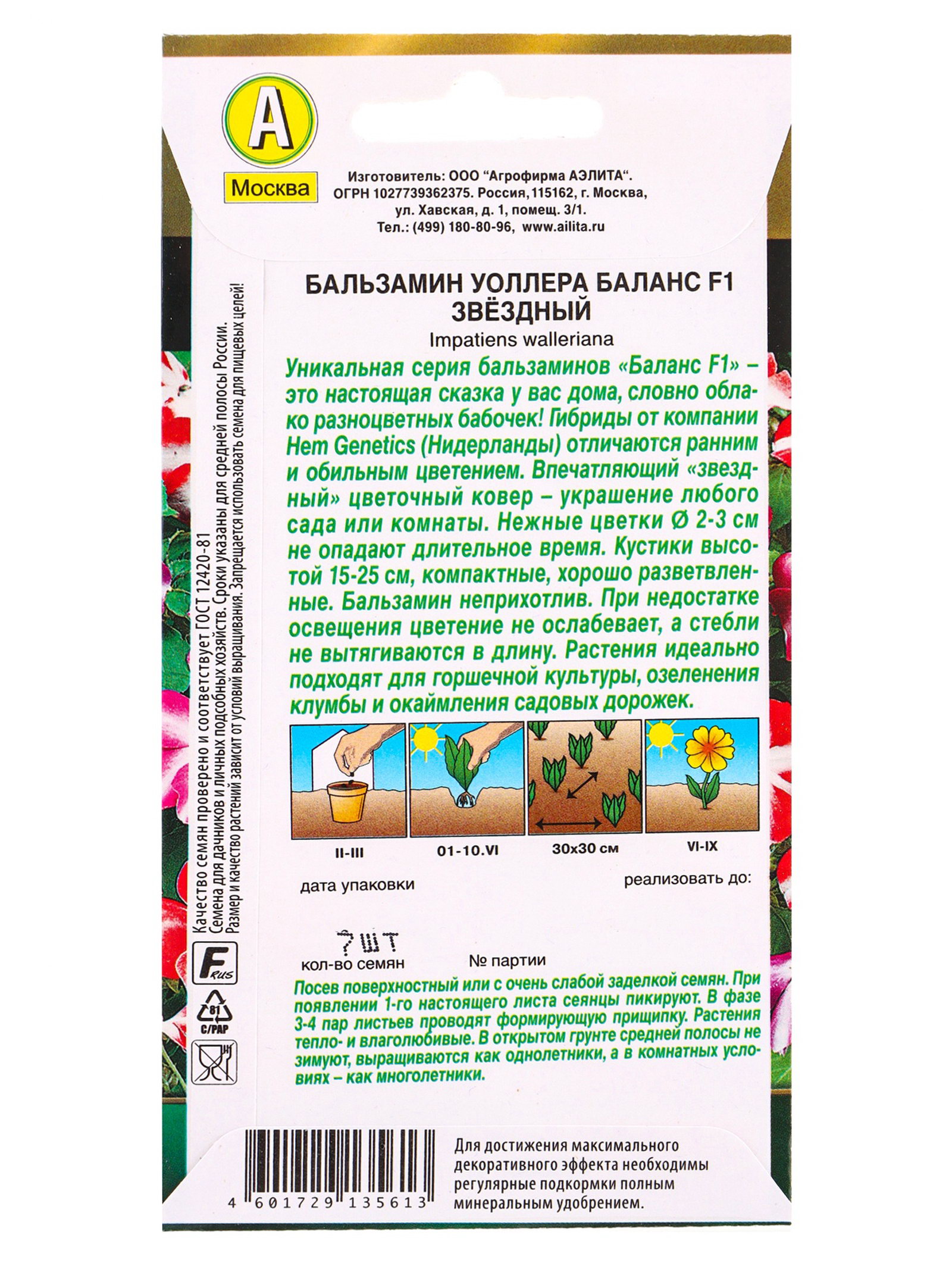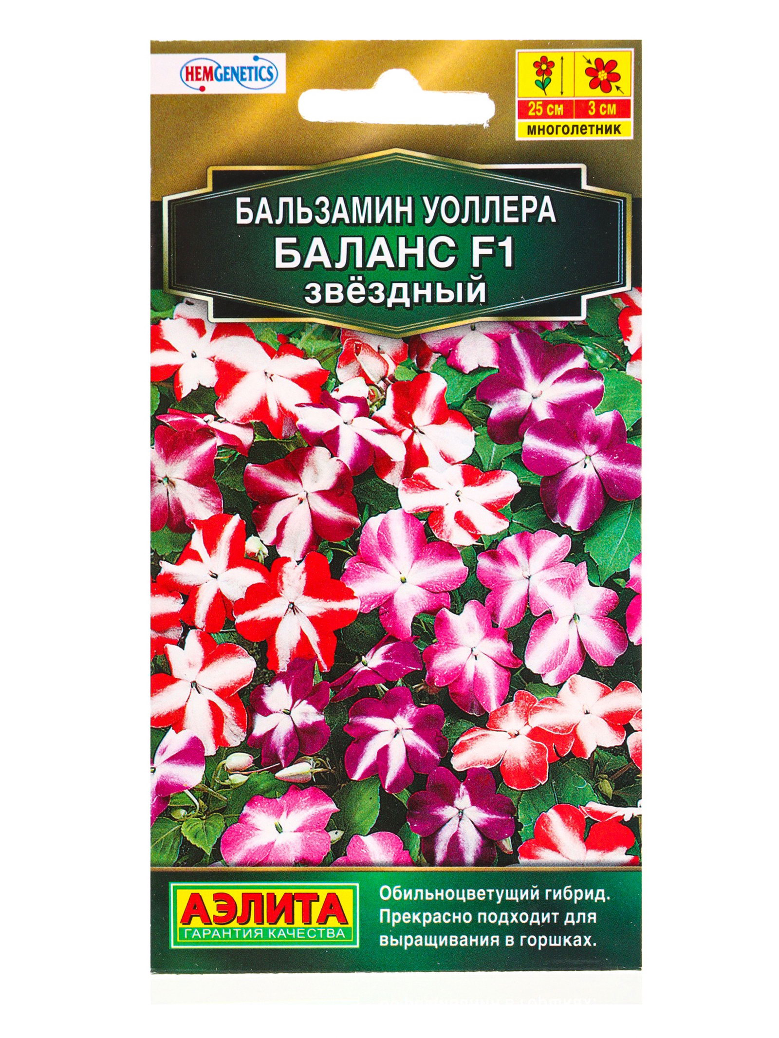 Семена цветов Бальзамин Баланс F1 звездный С. Hem Genetics Золотая серия, Ц/П,7 шт., Агрофирма АЭЛИТА, Индонезия