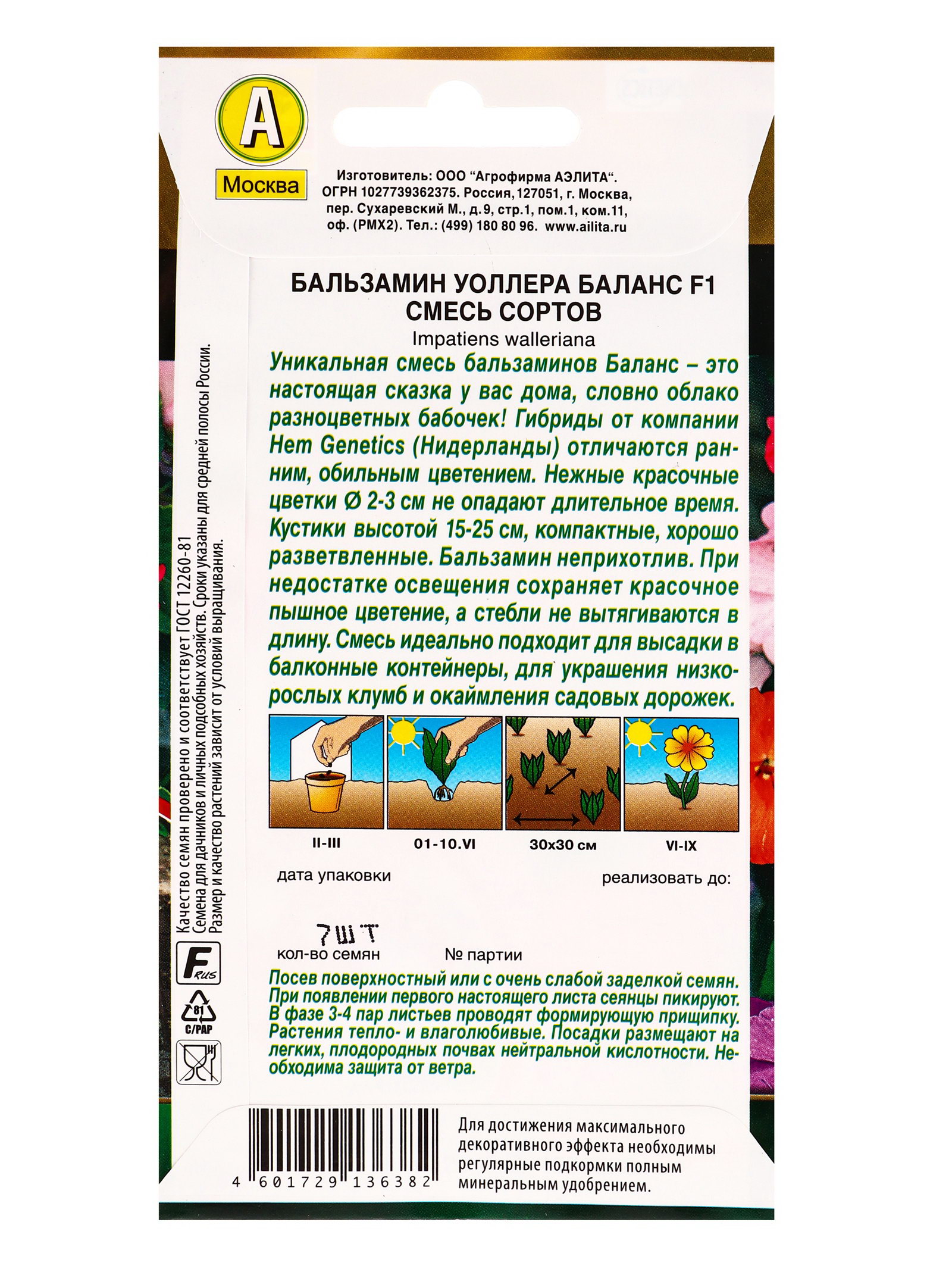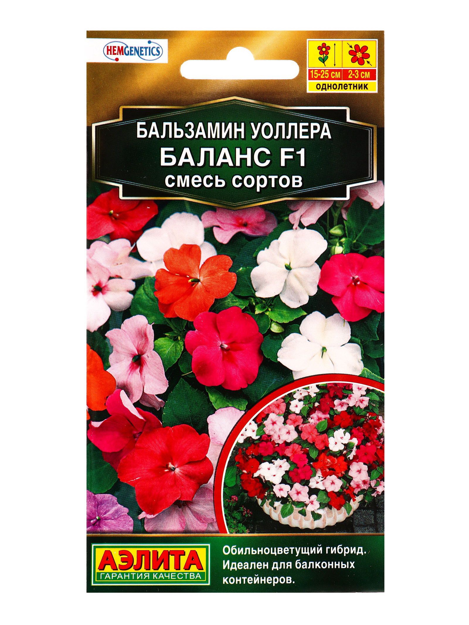Семена цветов Бальзамин Баланс F1, смесь сортов С. Hem Genetics Золотая серия, Ц/П,7 шт., Агрофирма АЭЛИТА, Индонезия