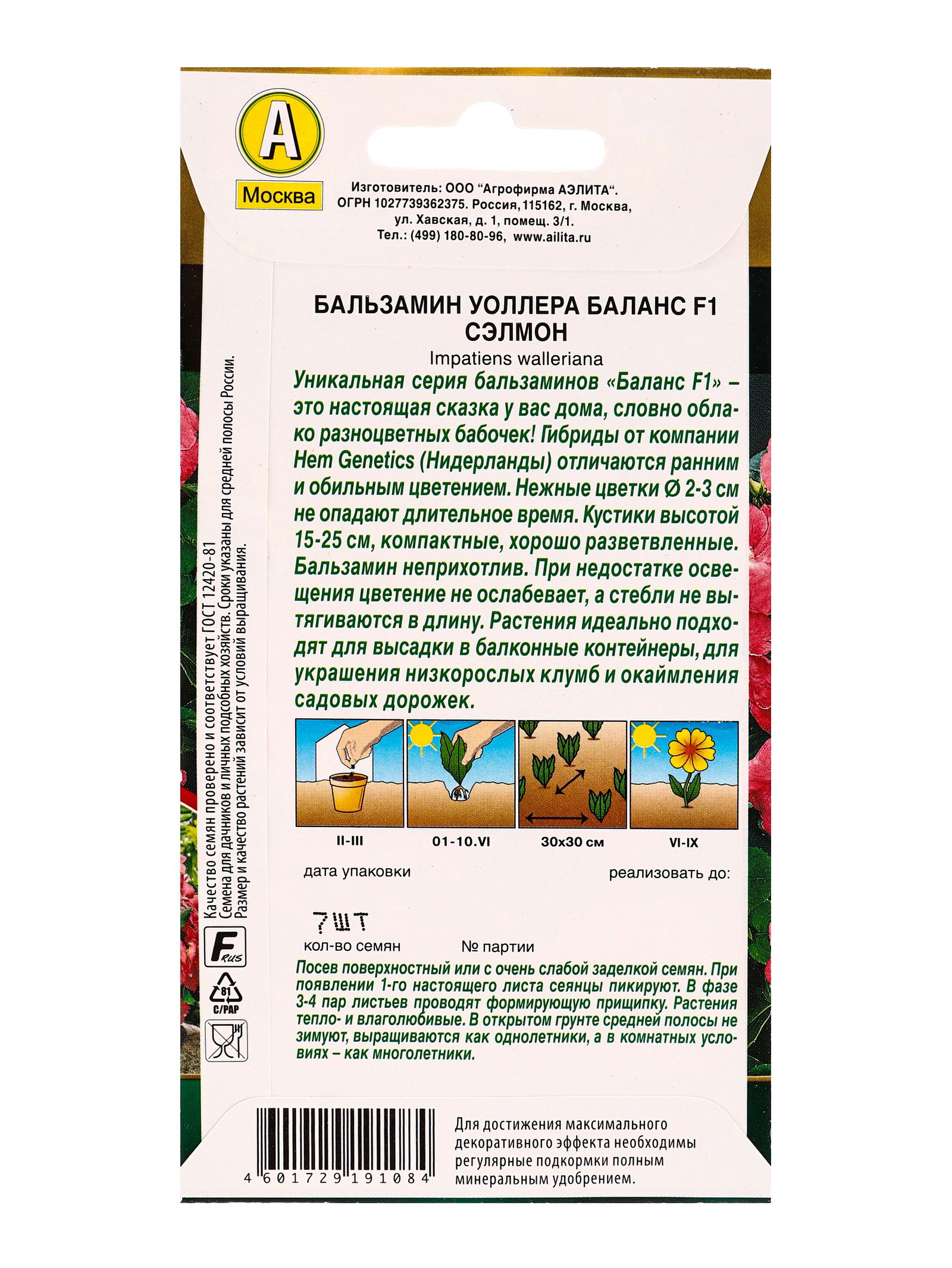 Семена цветов Бальзамин Баланс F1 сэлмон С. Hem Genetics Золотая серия, Ц/П,7 шт., Агрофирма АЭЛИТА, Индонезия
