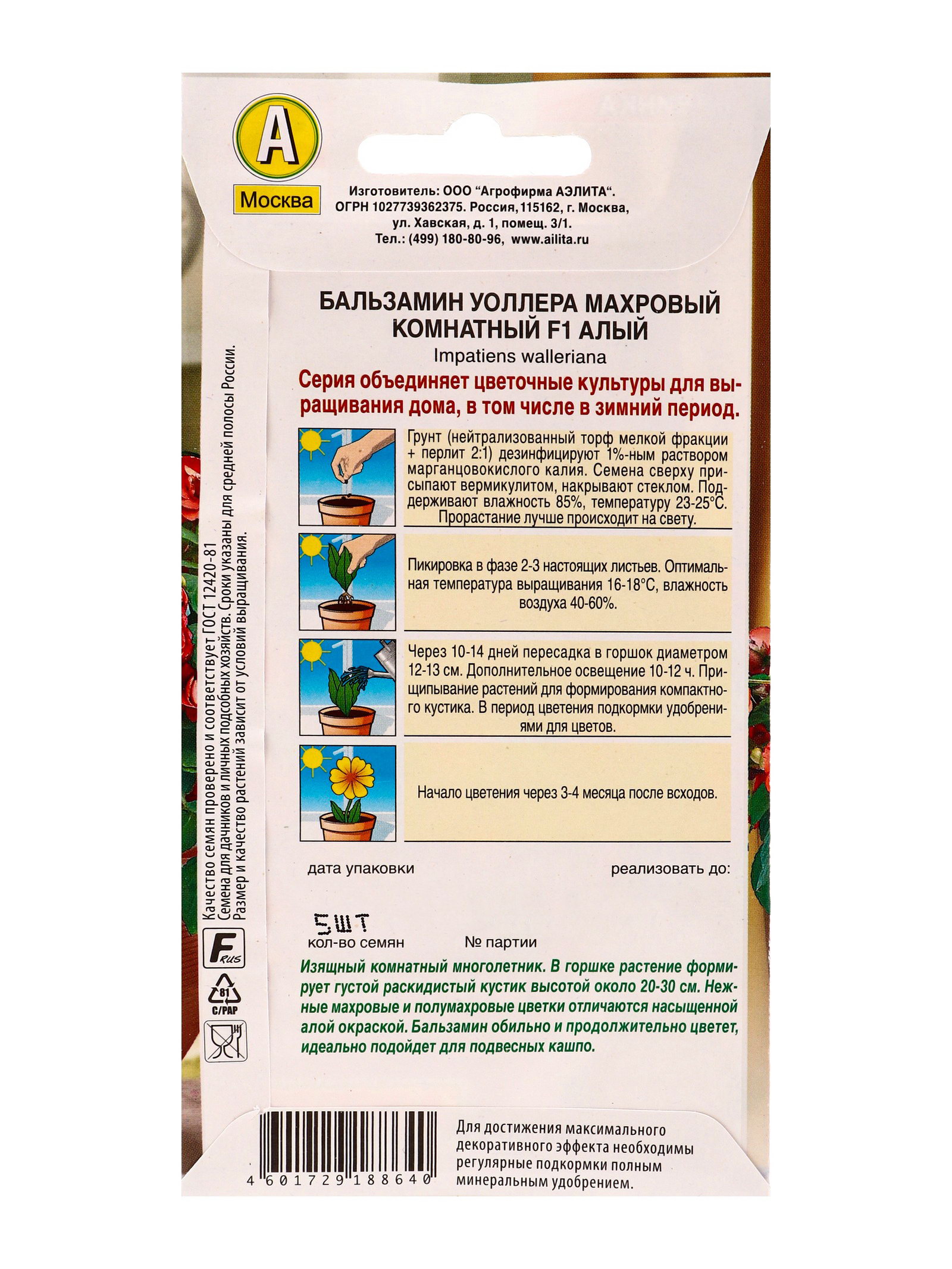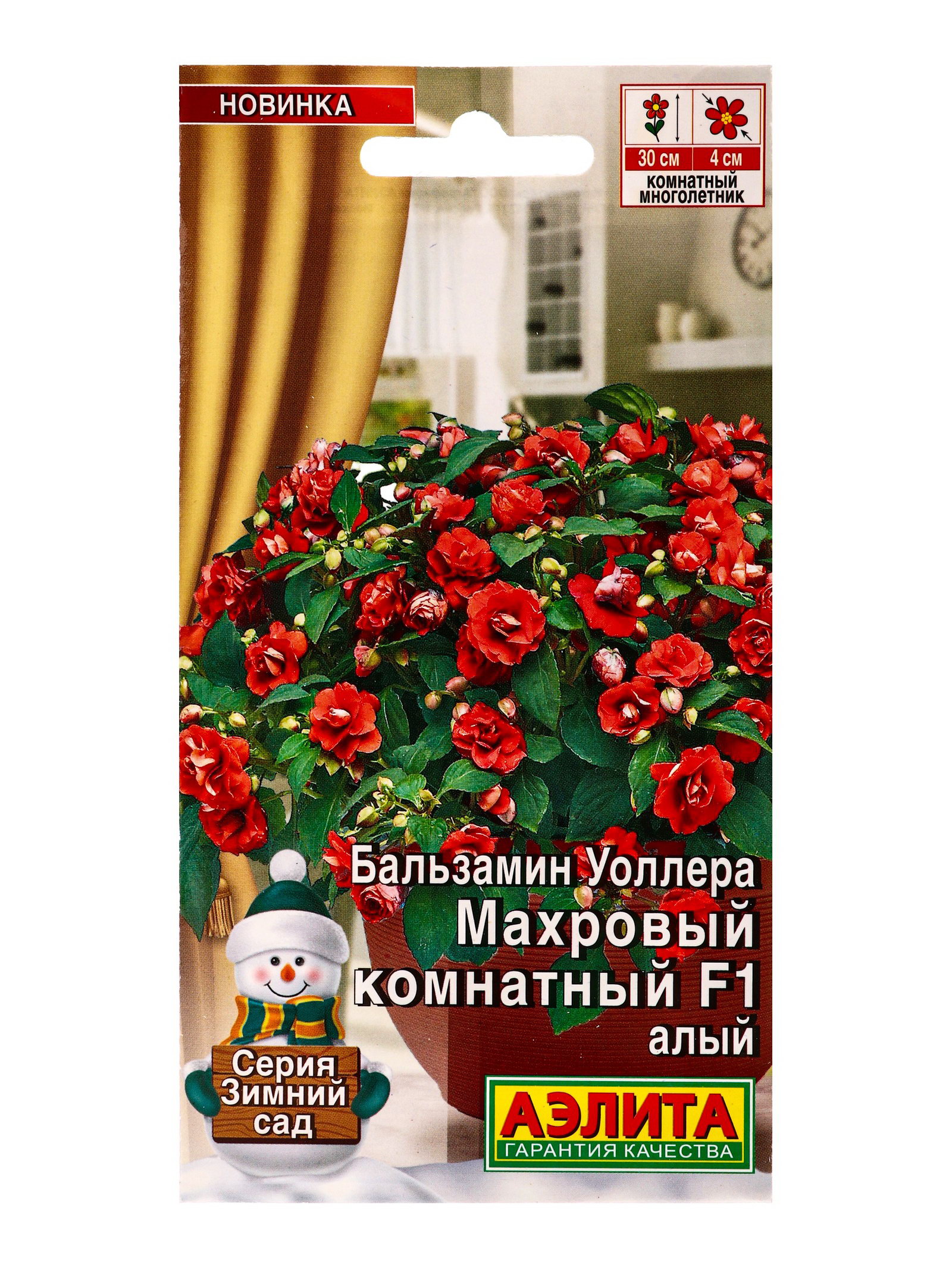 Семена цветов Бальзамин Махровый комнатный F1 алый Зимний сад, Ц/П,5 шт., Агрофирма АЭЛИТА, Россия