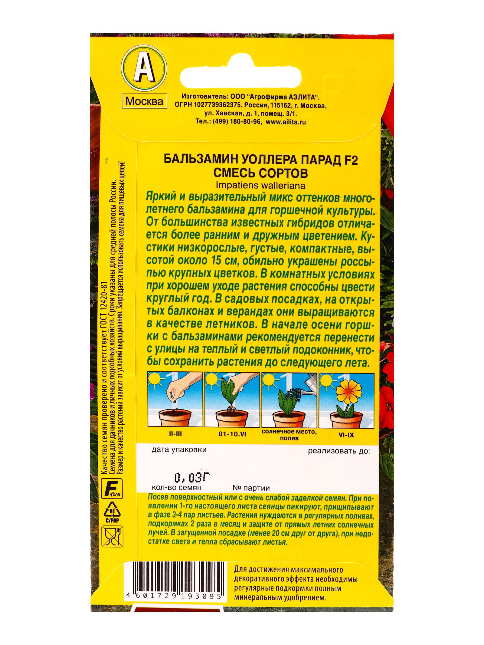 Семена цветов Бальзамин Парад F2, смесь сортов Цветущий балкон, Ц/П,0.03 г, Агрофирма АЭЛИТА, Нидерланды