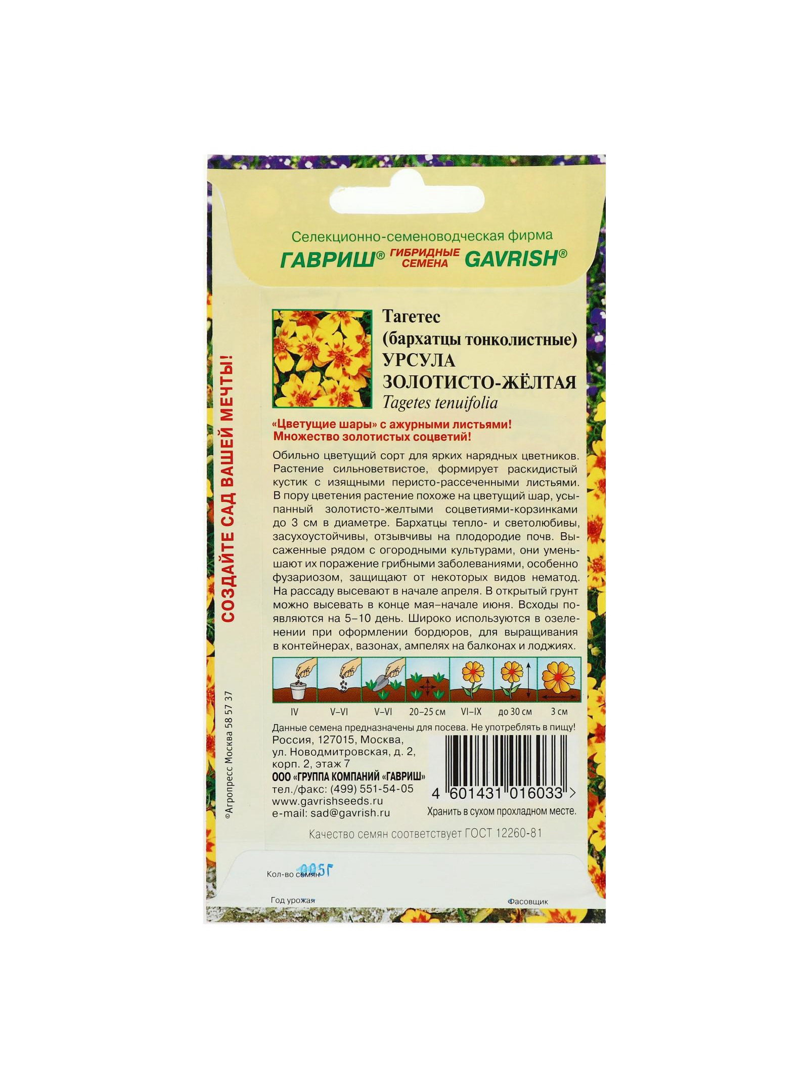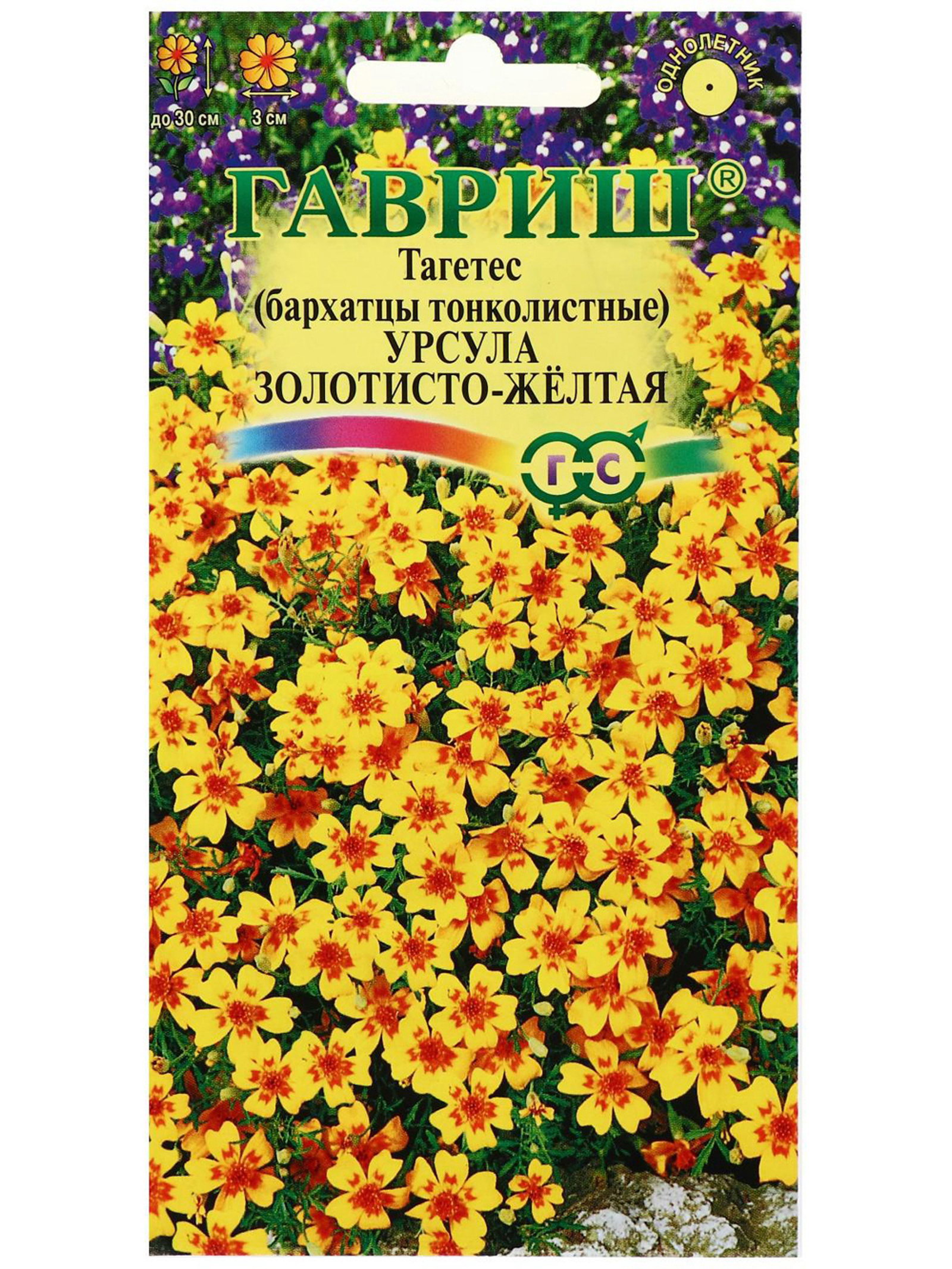 Семена цветов Бархатцы "Урсула золотисто-желтая", ц/п, тонколистные, 0.05 г, Гавриш, Россия