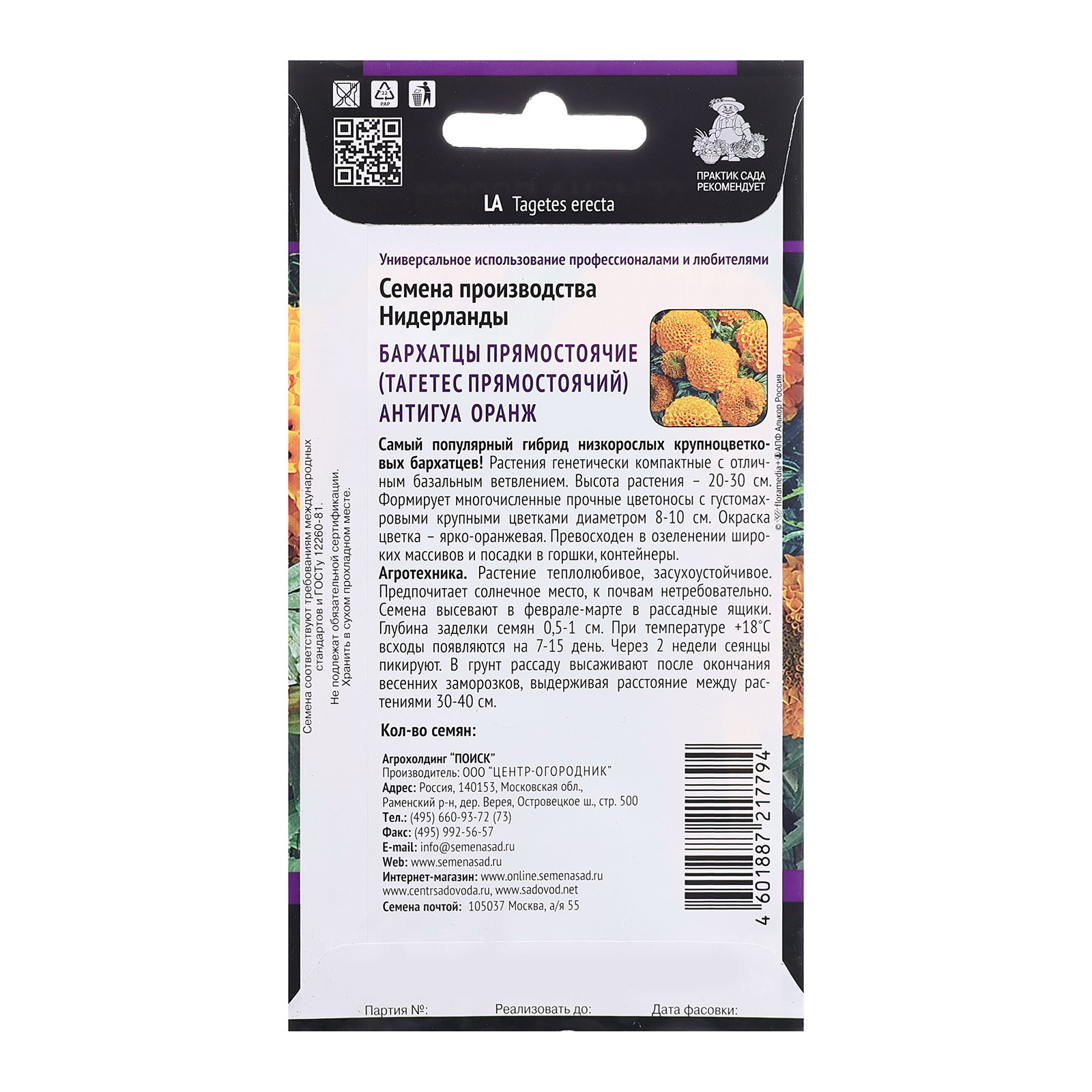 Семена цветов Бархатцы прямостоячие "Антигуа Оранж", 15шт, ПОИСК, Нидерланды