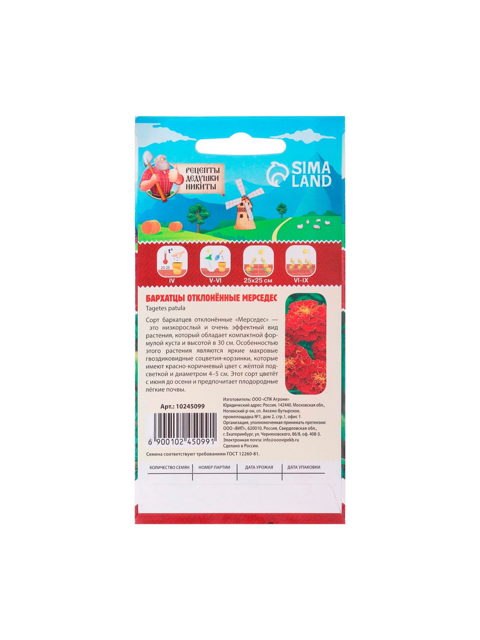 Семена цветов Бархатцы отклонённые, Рецепты дедушки Никиты, Россия